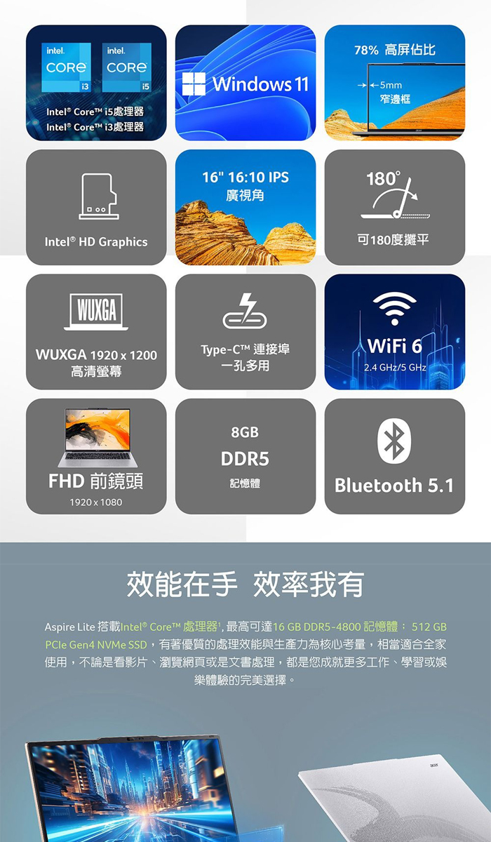 《Acer 宏碁》AL16-52P-58ZE(16吋WUXGA/i5-1334U/8G+16G/512G PCIe SSD/Win11/特仕版)