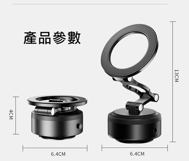 CITY BOSS 360度旋轉真空磁吸多用途車架/固定架/桌上立架 強力磁吸+電子馬達真空吸附吸盤-黑