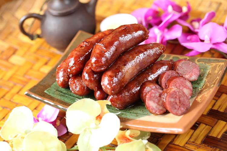 巨佳食品行的招牌商品『紅麴高梁香腸』,是用每日清晨現宰的溫體豬肉,