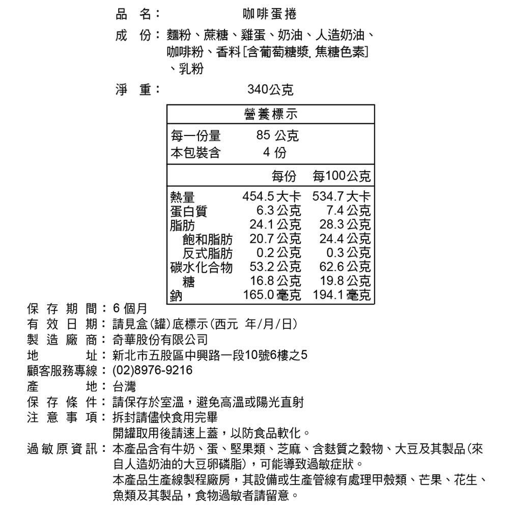 【奇華】家鄉雞蛋捲_咖啡(340g/盒 附提袋)_2026年節禮盒