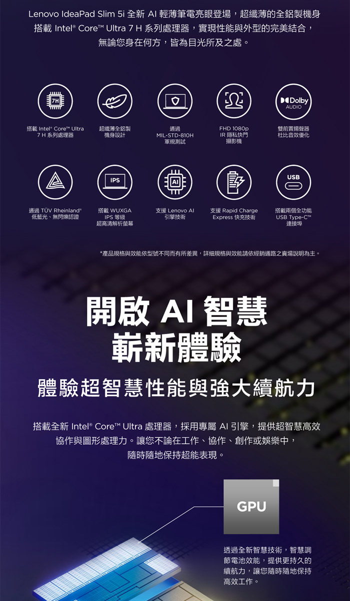 《Lenovo 聯想》IdeaPad Slim 5 83DC008MTW(16吋WUXGA/U7 155H/16G/1TB+512G SSD/W11/特仕版)