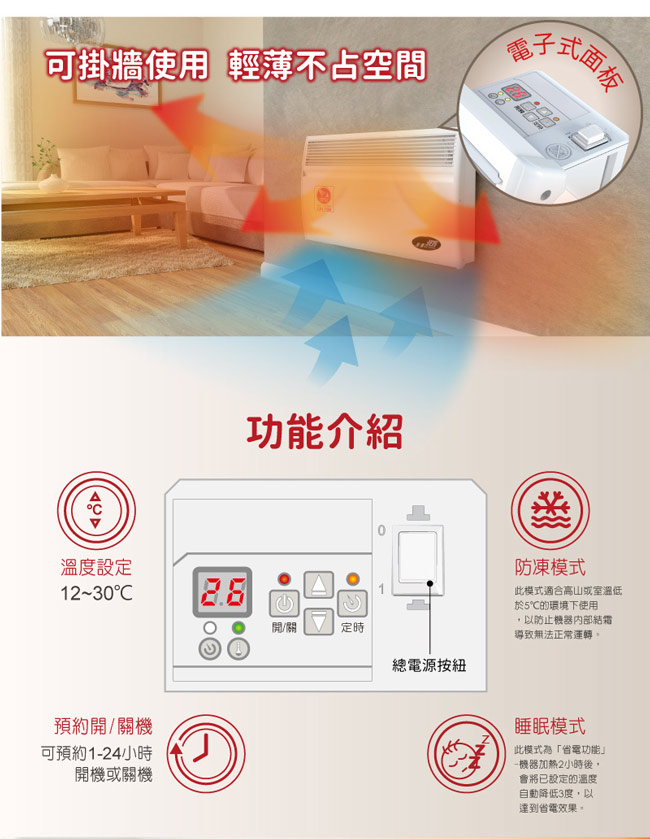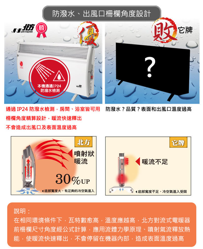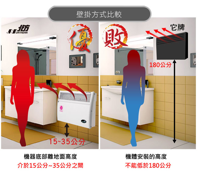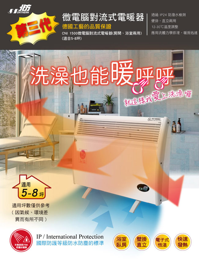 【北方】第三代微電腦對流式電暖器(房間、浴室兩用)CNI-1500