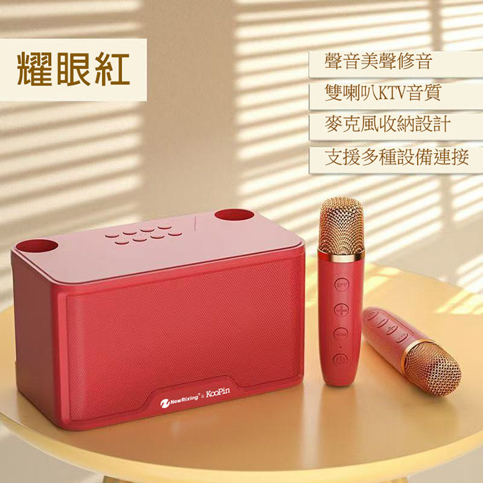 KooPin 雙人對唱行動KTV/藍牙喇叭無線麥克風組(附贈收納提袋)