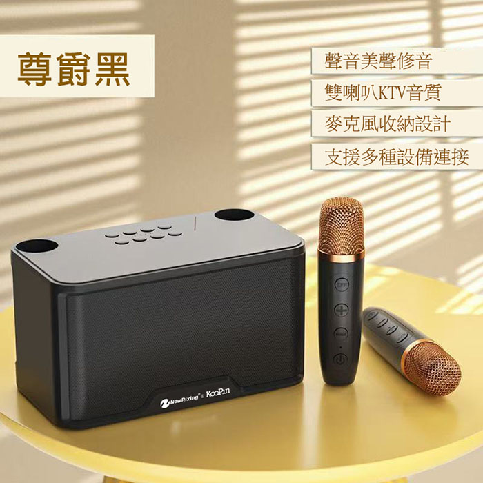 KooPin 雙人對唱行動KTV/藍牙喇叭無線麥克風組(附贈收納提袋) 尊爵黑