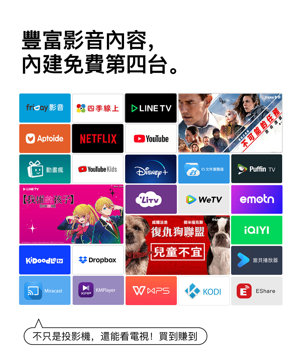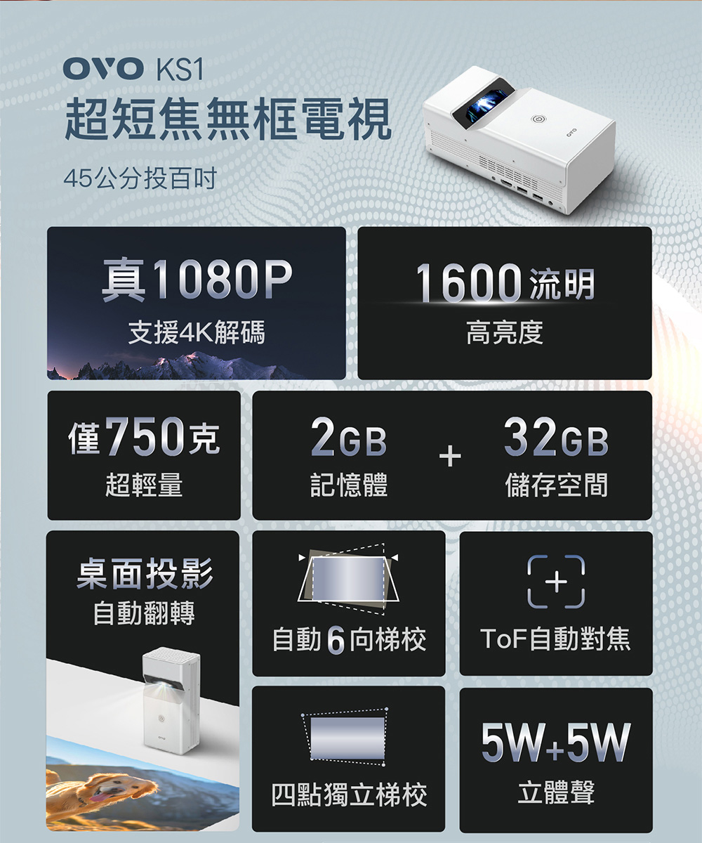 OVO 1080p超短焦 智慧投影機 KS1 時尚白*送四季線上+Friday影視30天