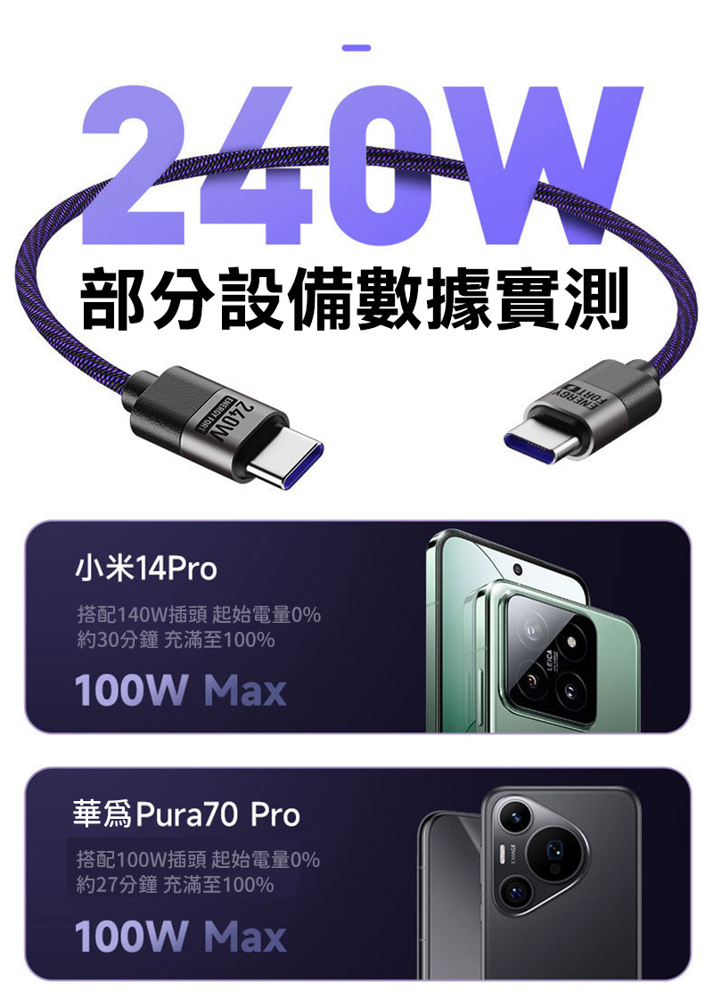 ENERGY FORT USB Type-C to USB Type-C 膠囊快充線(240W)(0.2M)(透黑)