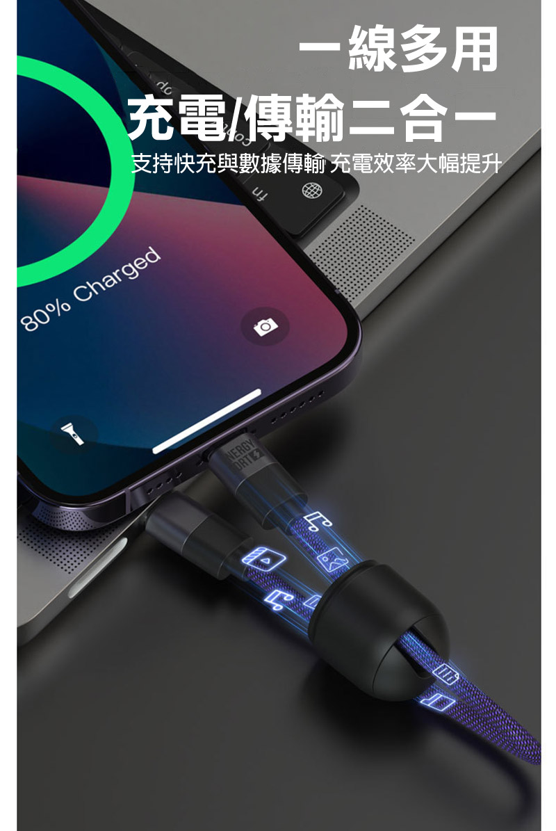 .一線多用,充電傳輸二合一