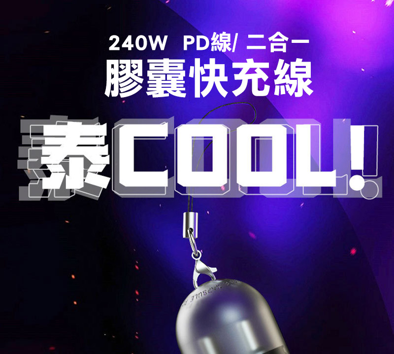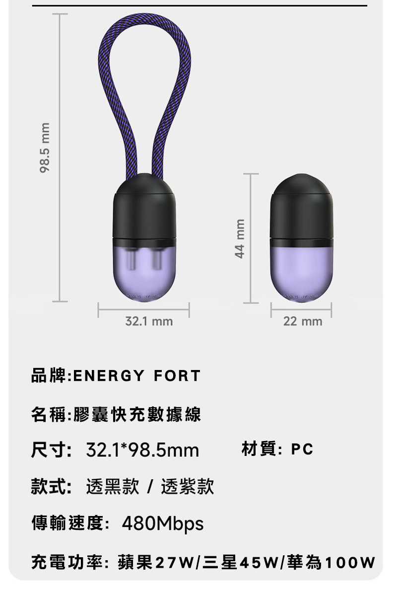 ENERGY FORT USB Type-C to USB Type-C 膠囊快充線(240W)(0.2M)(透紫)