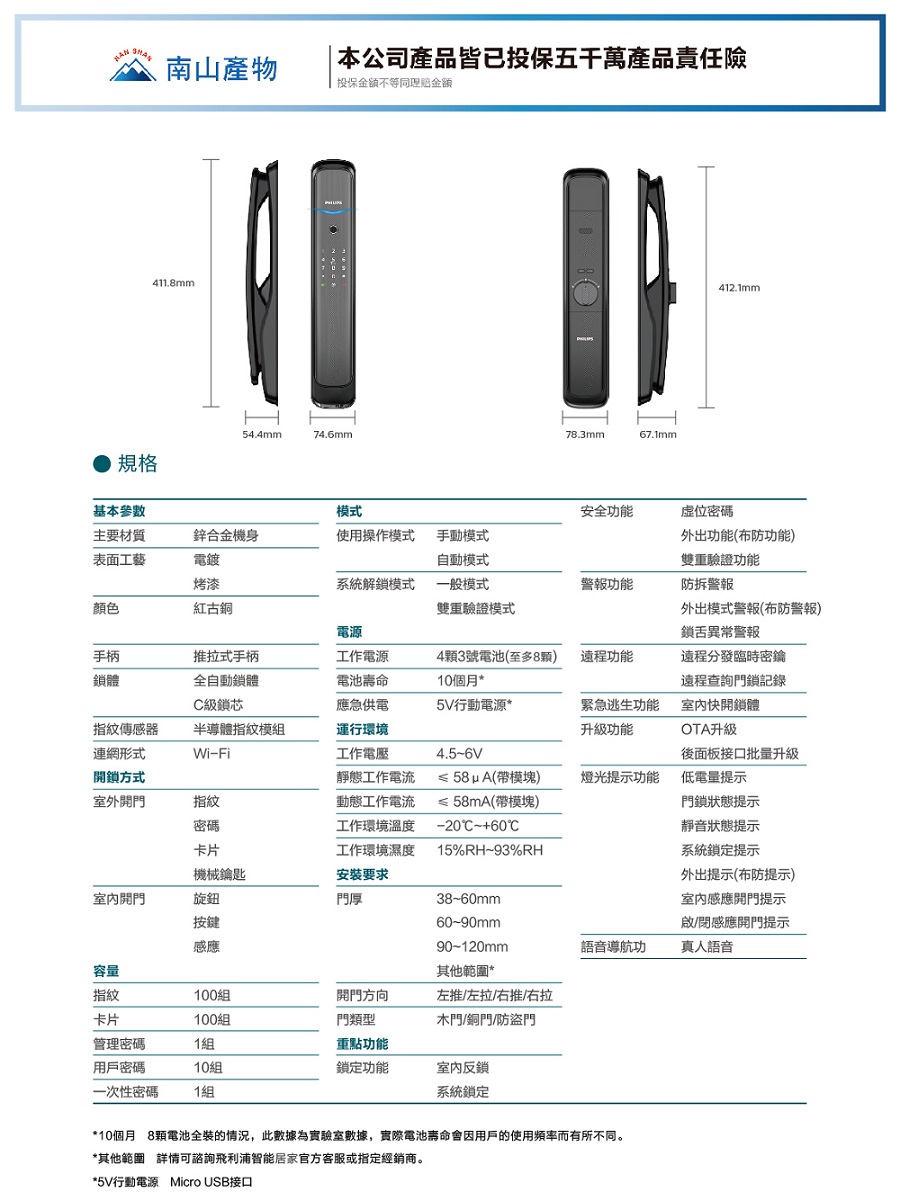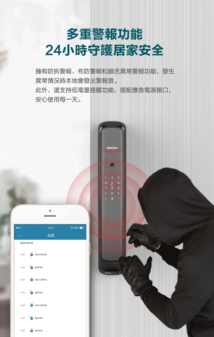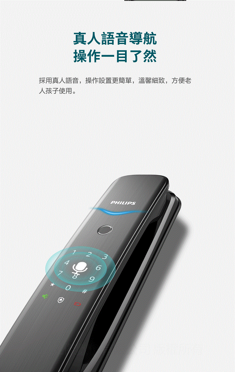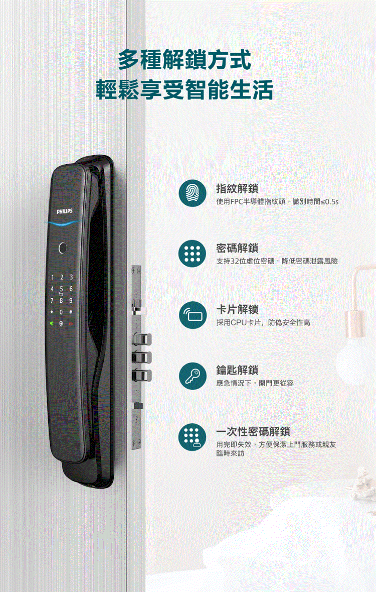 【PHILIPS 飛利浦】702E 五合一推拉式聯網電子鎖(指紋│卡片│密碼│鑰匙│WiFi/含安裝)