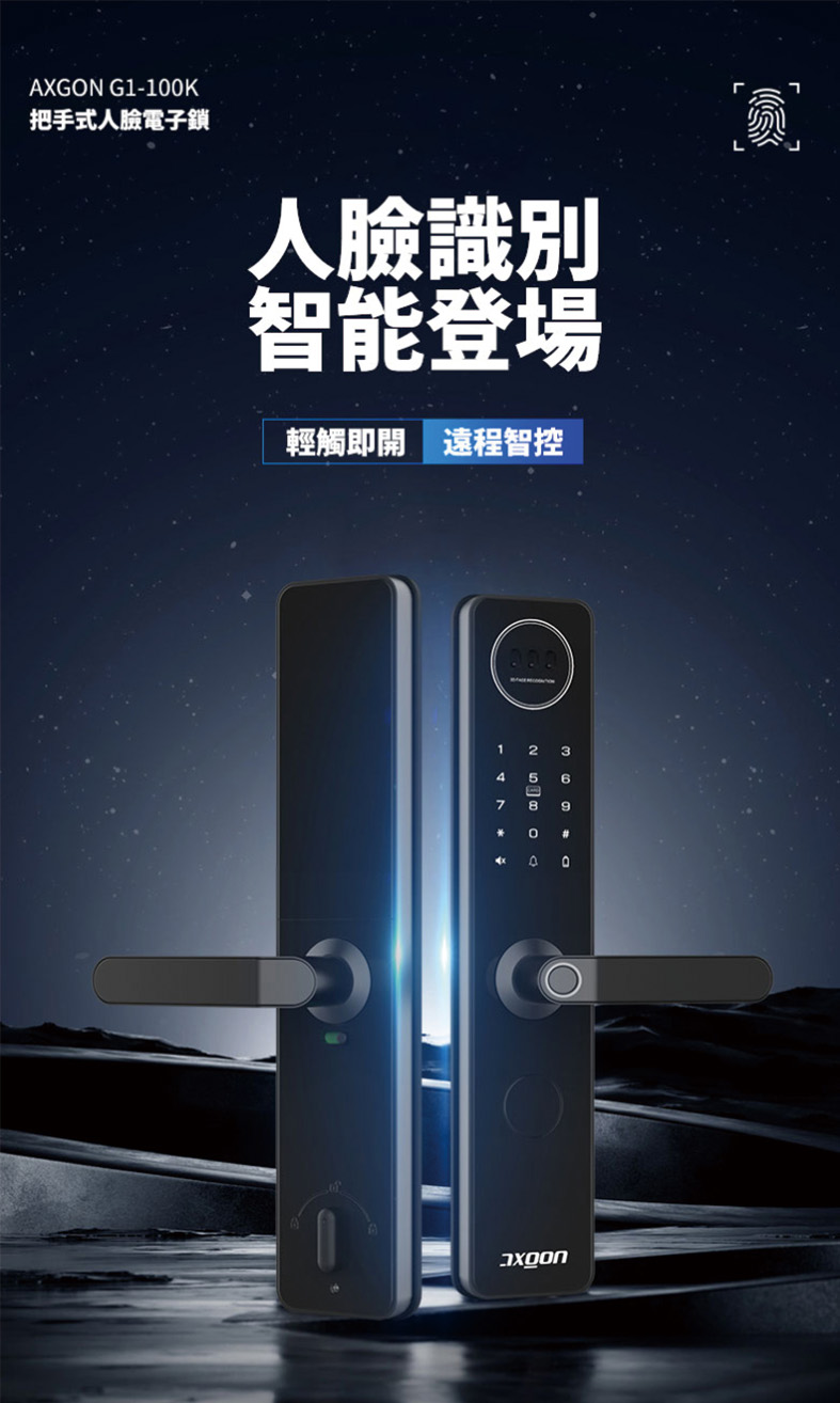 【 AXGON】 G1-100K 人臉辨識八合一電子鎖(人臉│指紋│卡片│密碼│鑰匙│APP│NFC/含安裝)
