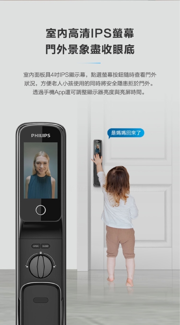 【Philips 飛利浦】-ALPHA VP 貓眼推拉電子鎖(貓眼│指紋│卡片│密碼│鑰匙│WiFi/含安裝)