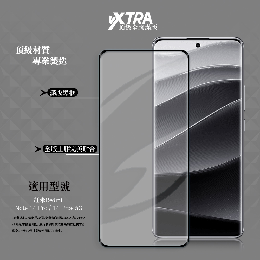 VXTRA 全膠貼合 紅米Redmi Note 14 Pro / 14 Pro+ 5G 3D滿版疏水疏油9H鋼化頂級玻璃膜(黑)