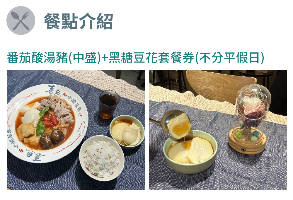 【喜魚小酸菜魚】番茄酸湯豬(中盛)+黑糖豆花套餐券(不分平假日)MO25