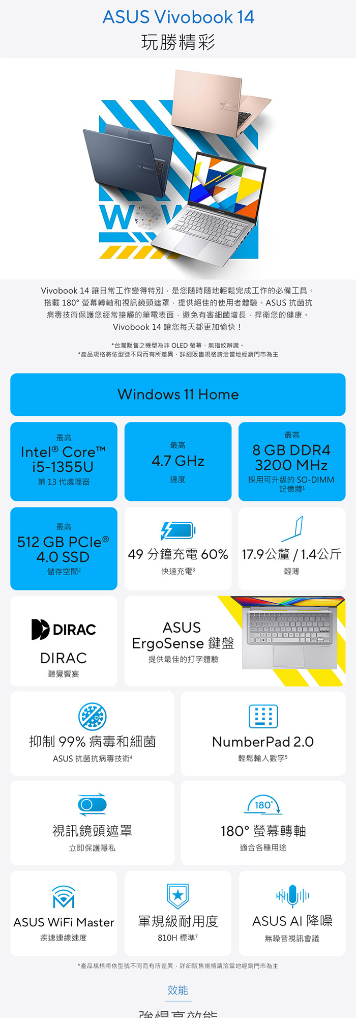 《ASUS 華碩》X1404VA-0261W1334U(14吋FHD/i5-1334U/8G+16G/2TB SSD/Win11/特仕版)