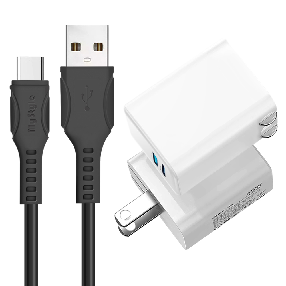 CITY 35W Gan氮化鎵Type-C(PD)+USB快充白+MyStyle 國際UL認證線 USB to Type-C 快充線-黑100cm