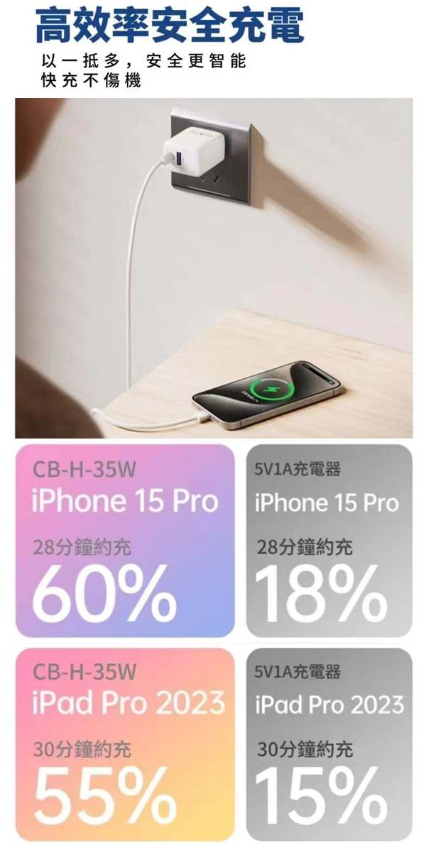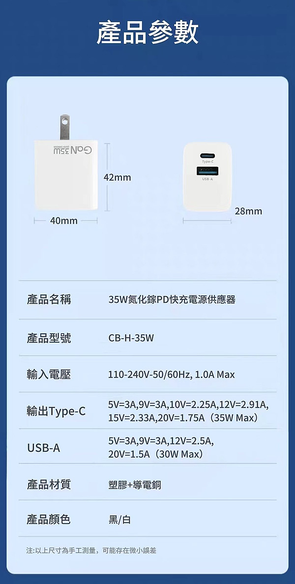 CITYBOSS 35W Gan氮化鎵PD+QC 3.0(Type-C+USB)氮化鎵迷你充電器 快充頭