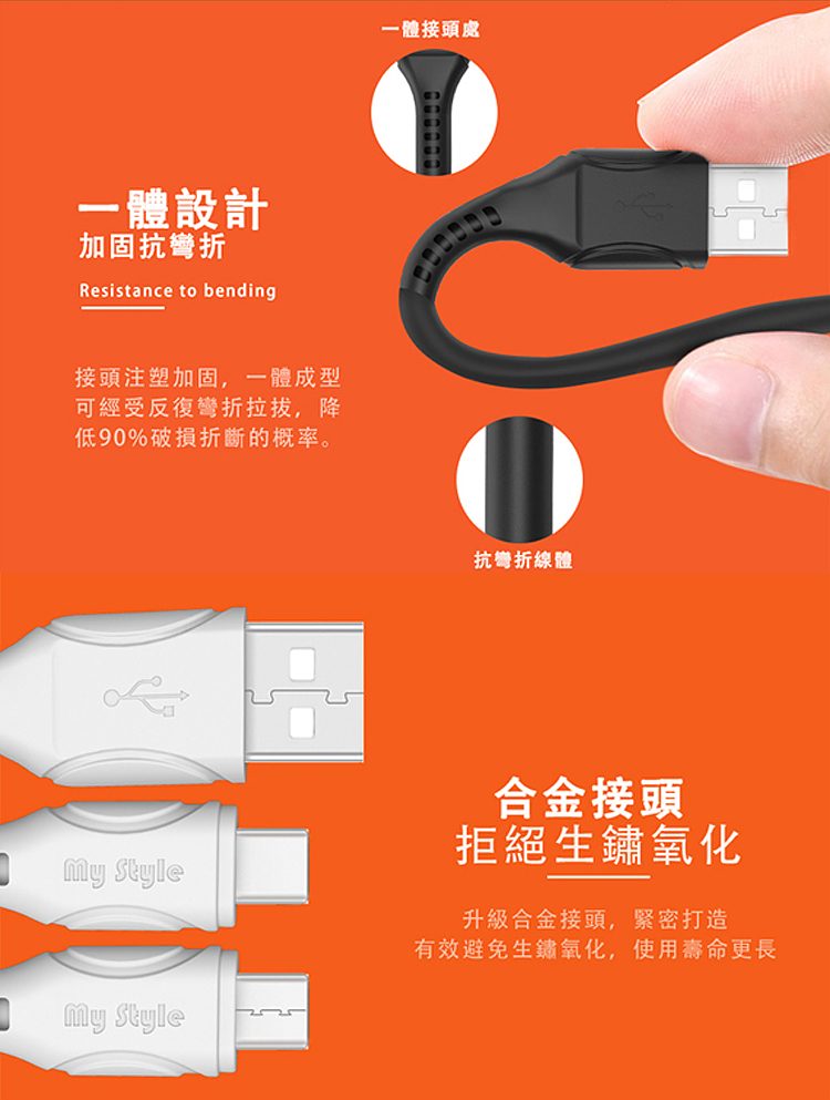 MyStyle 國際UL認證 SR超耐折 USB to Type-C 充電線-100公分