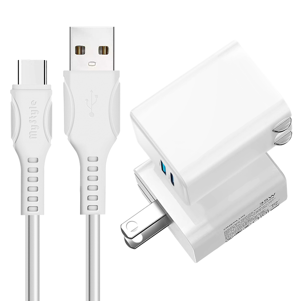 CITY 35W Gan氮化鎵Type-C(PD)+USB快充白+MyStyle 國際UL認證線 USB to Type-C 快充線-白100cm