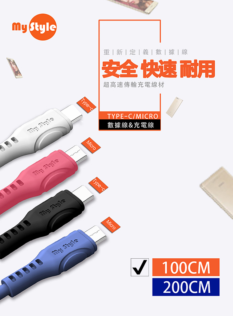 MyStyle 國際UL認證 SR超耐折 USB to Type-C 充電線-100公分