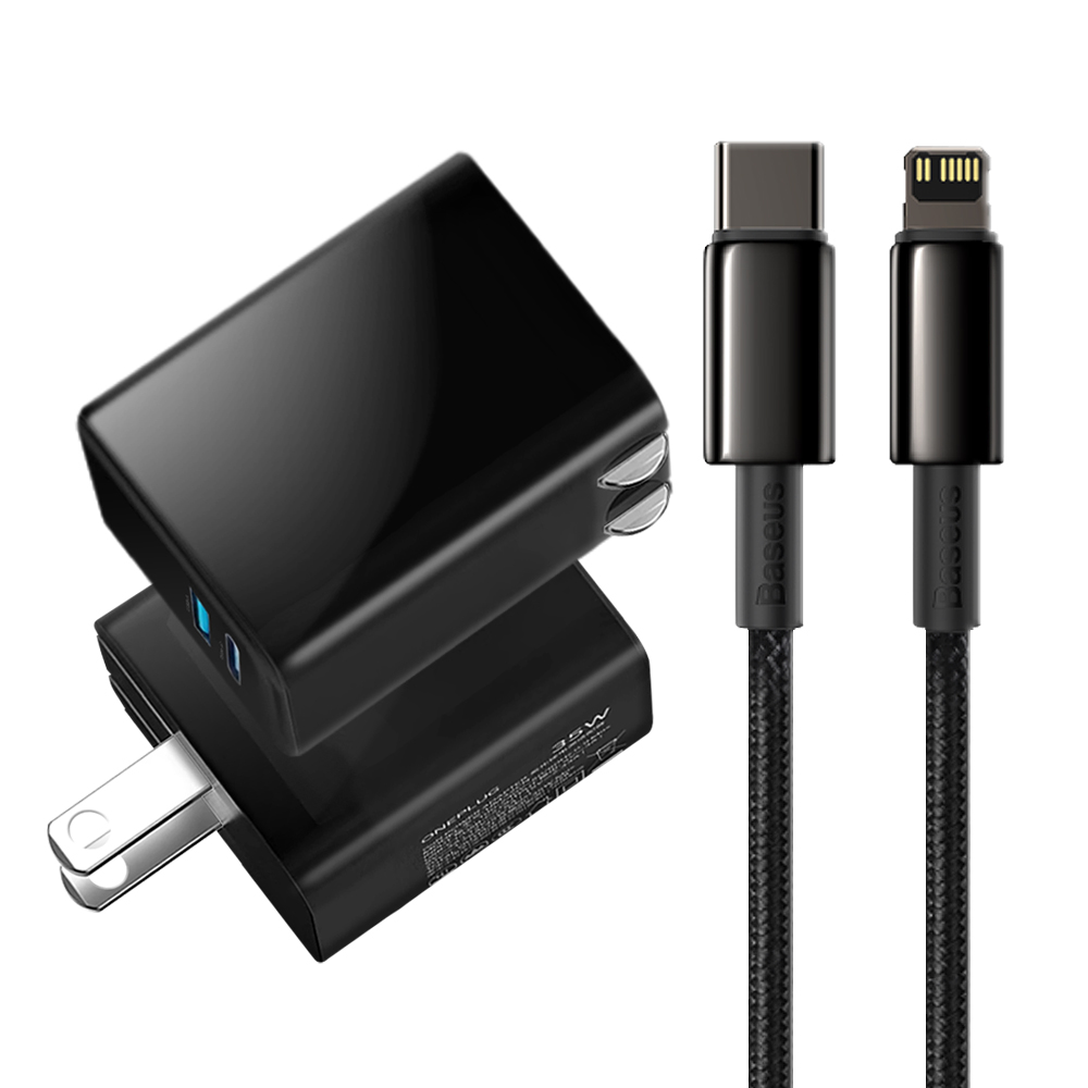 CITY 35W Gan氮化鎵Type-C(PD)+USB快充黑+倍思 鎢金PD Type-C to Lightning 快充線-200cm