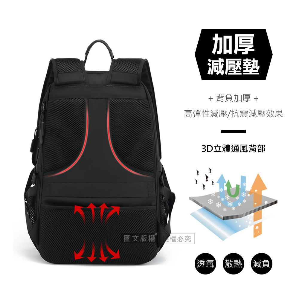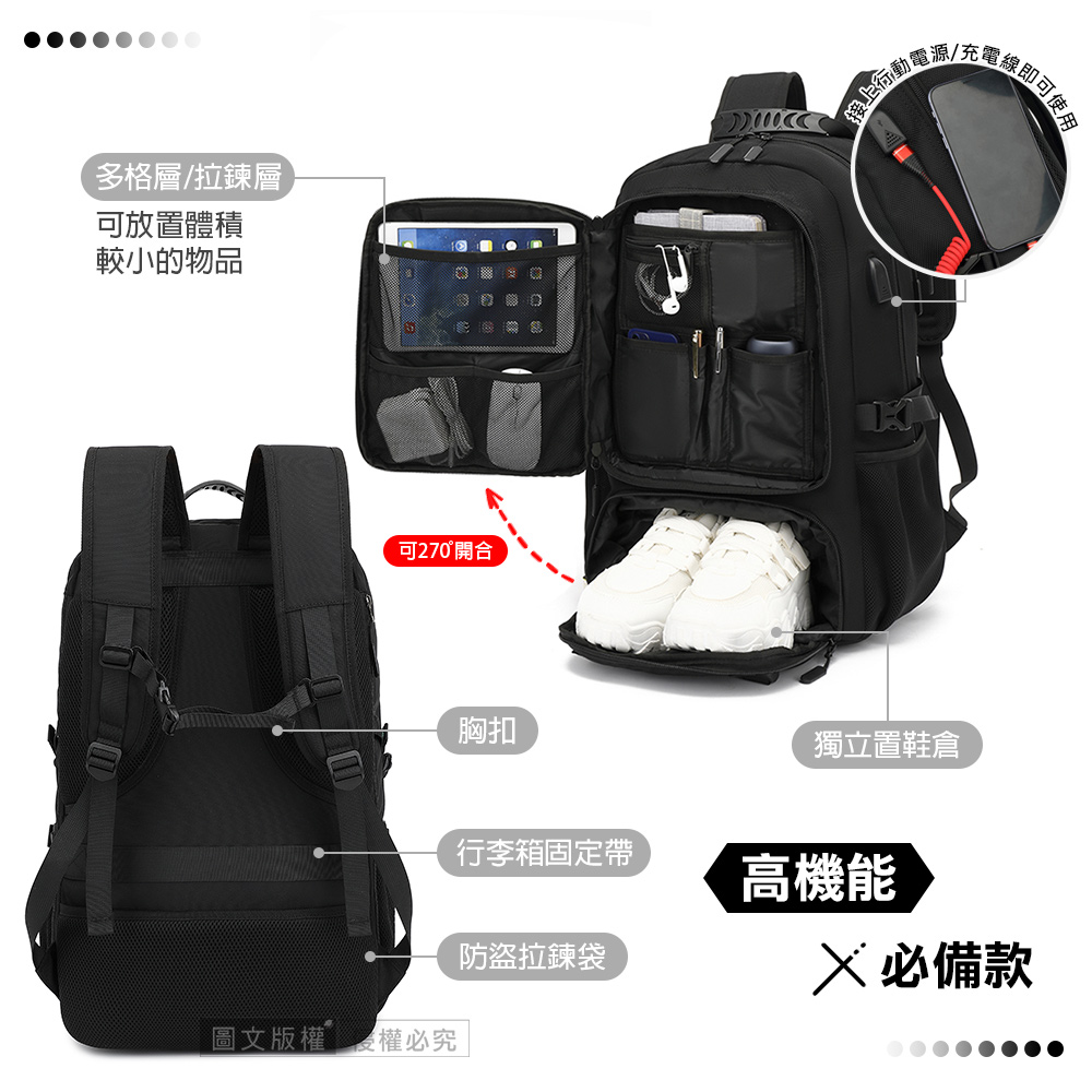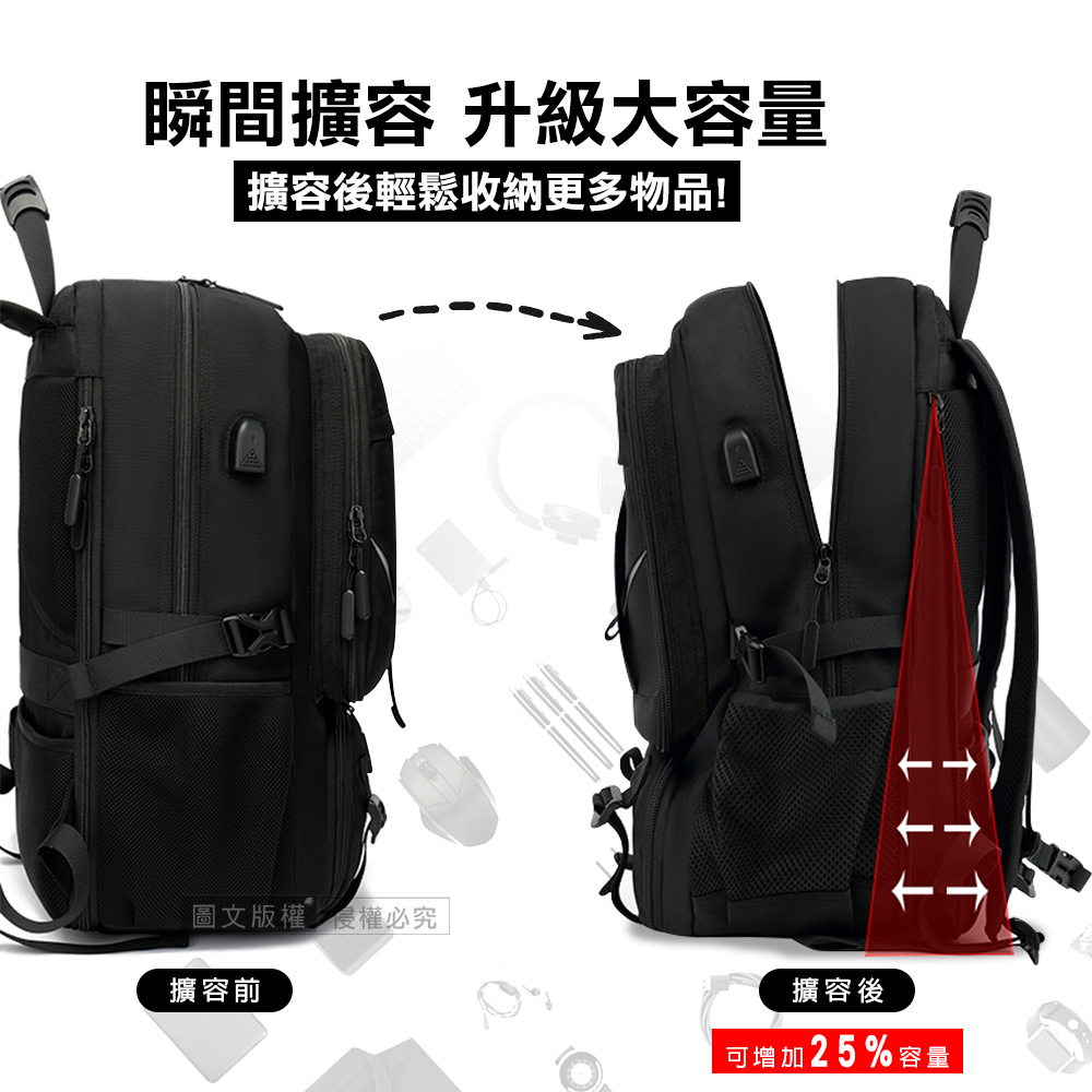 17.3吋 全能探索 超大容量防潑水電腦包 瞬間擴容/獨立鞋倉/透氣背墊後背包 外置USB充電口