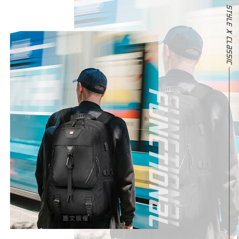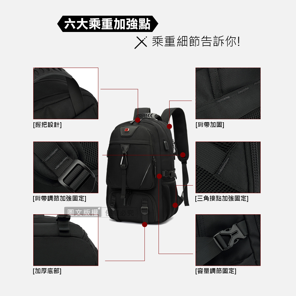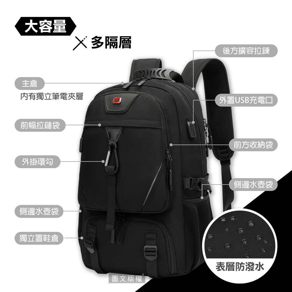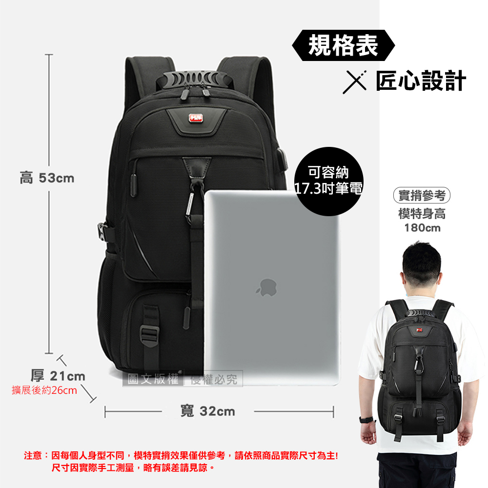 17.3吋 全能探索 超大容量防潑水電腦包 瞬間擴容/獨立鞋倉/透氣背墊後背包 外置USB充電口