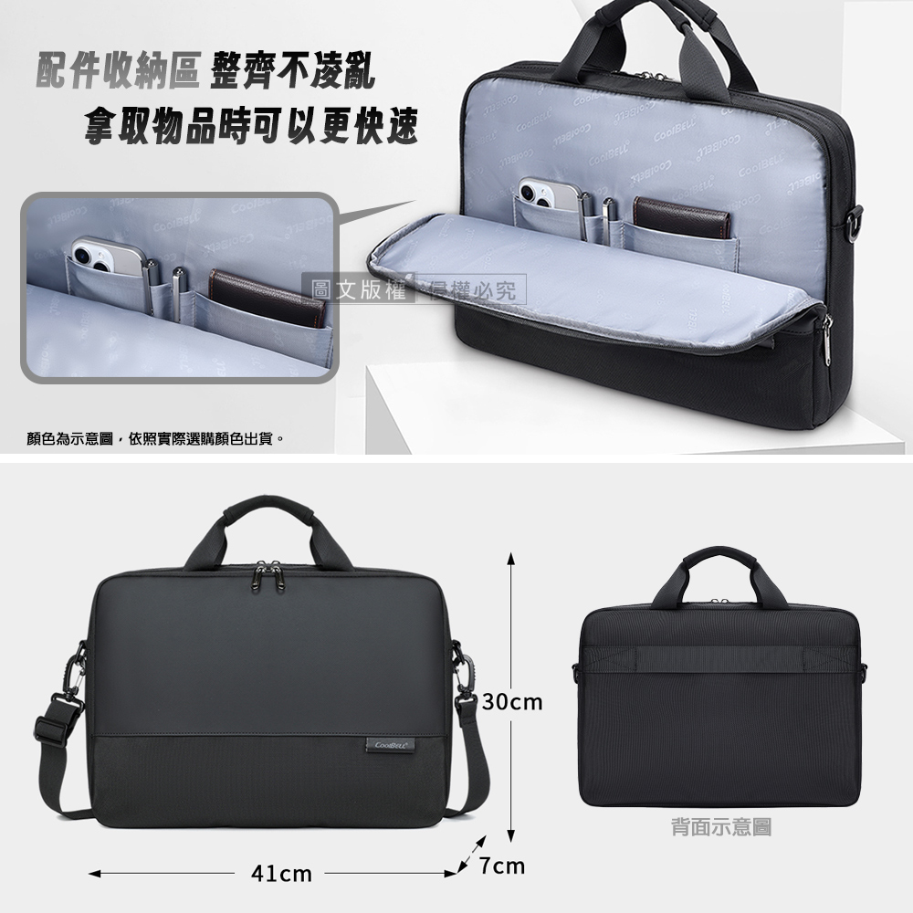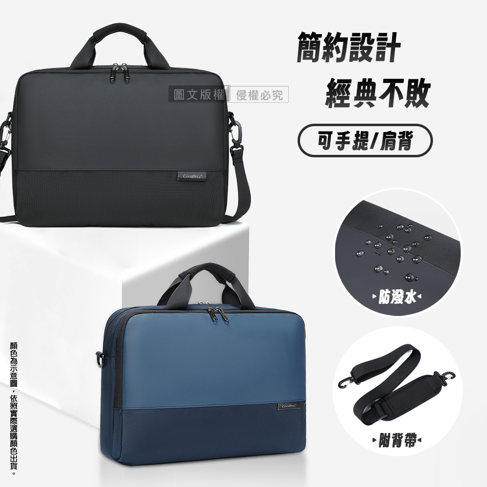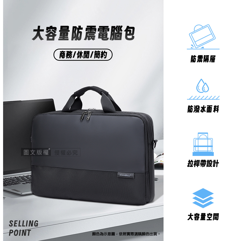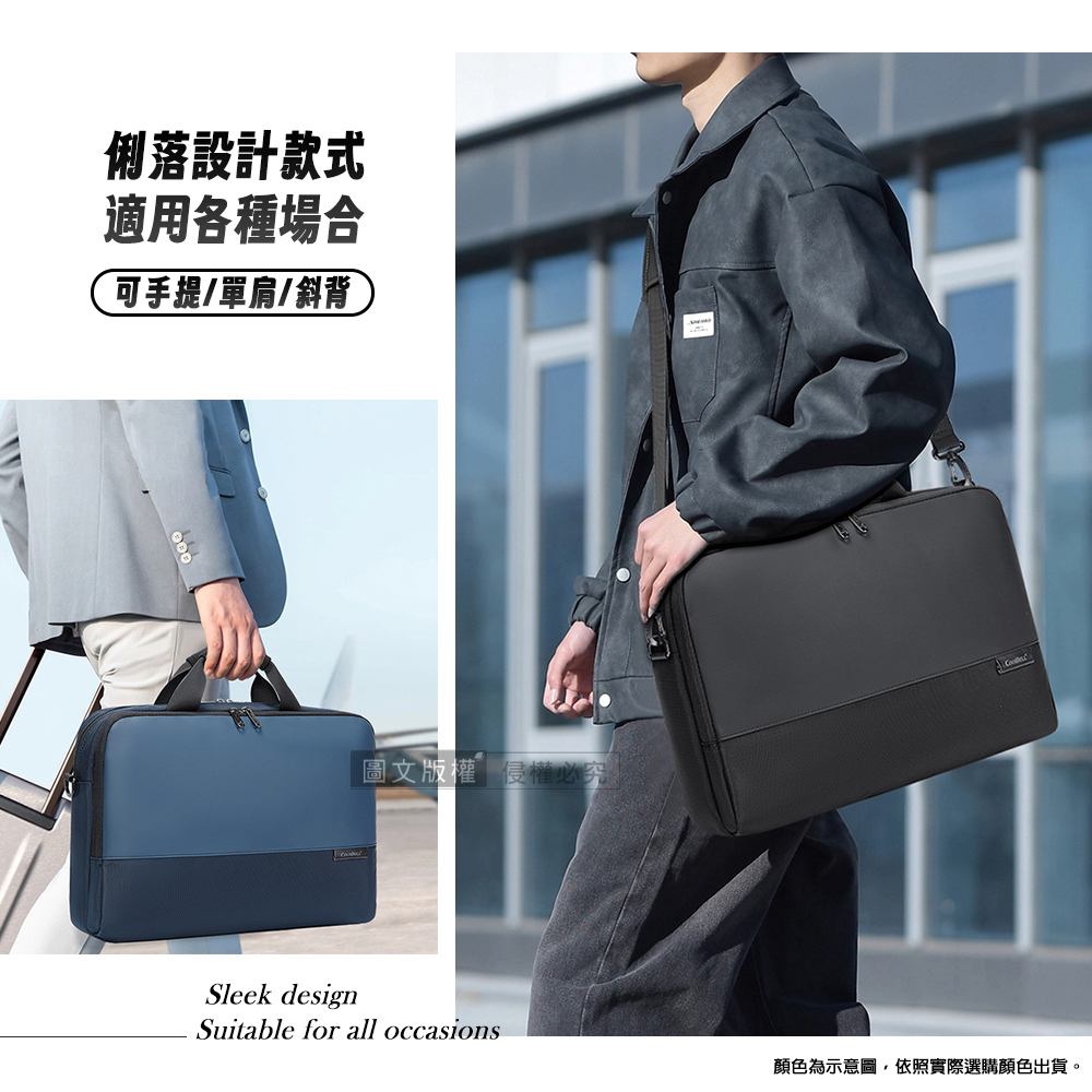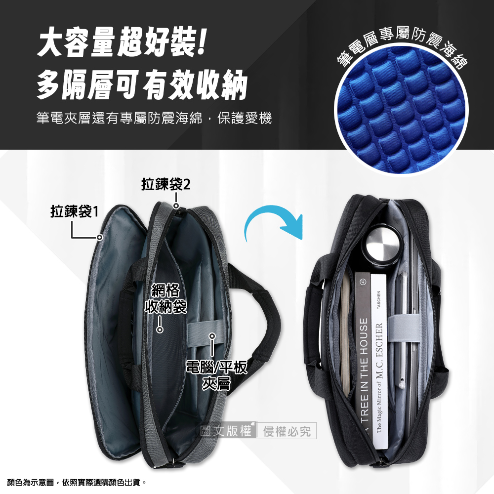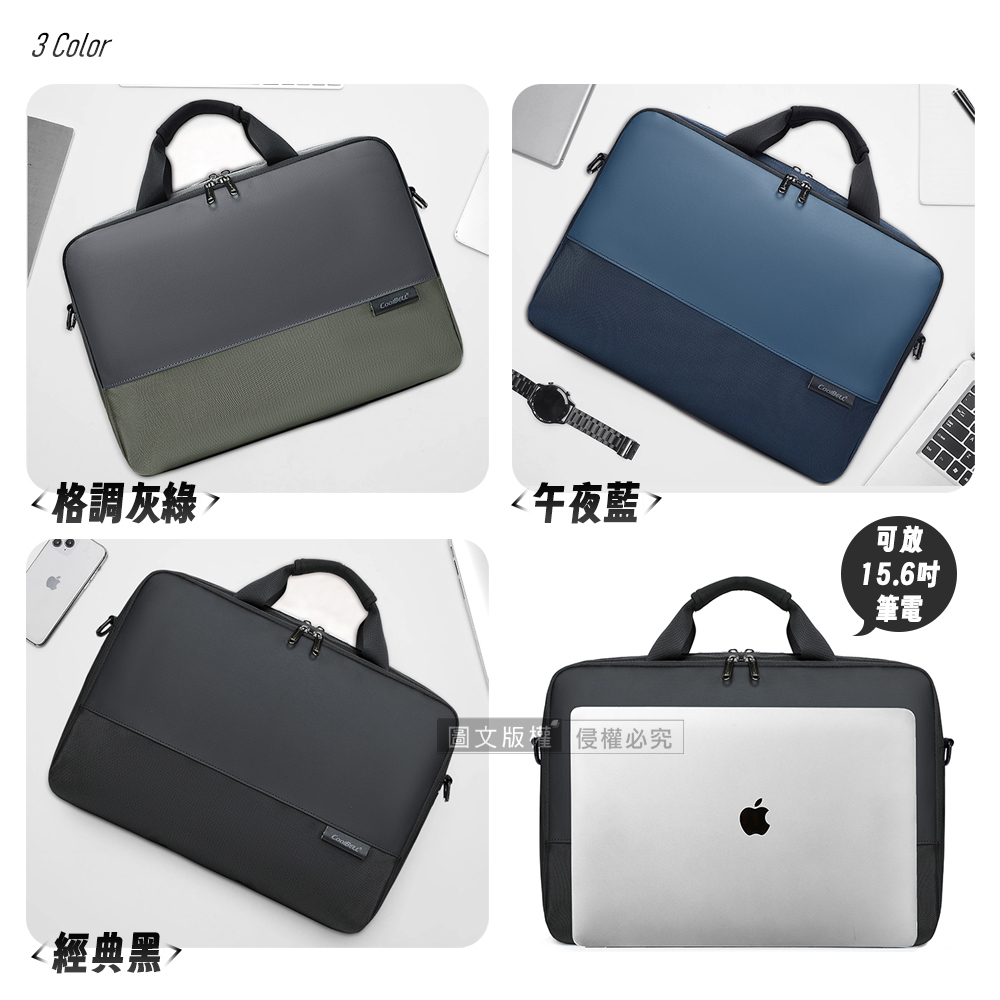 拼色質感 15.6吋 商務筆電公事包 大容量多夾層防潑水 內置防震海綿 附背帶-經典黑