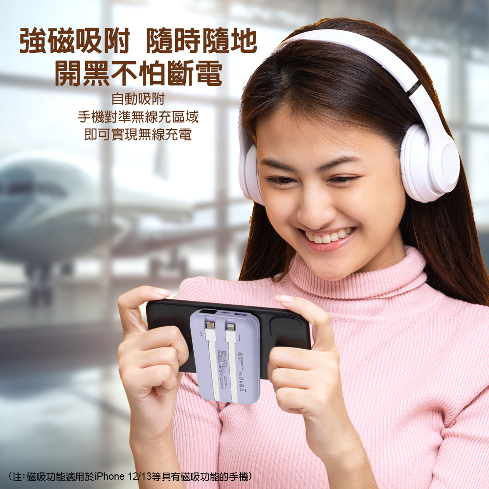 自帶雙線Type-C+iPhone,隨充隨用省時省力,高效又便捷。