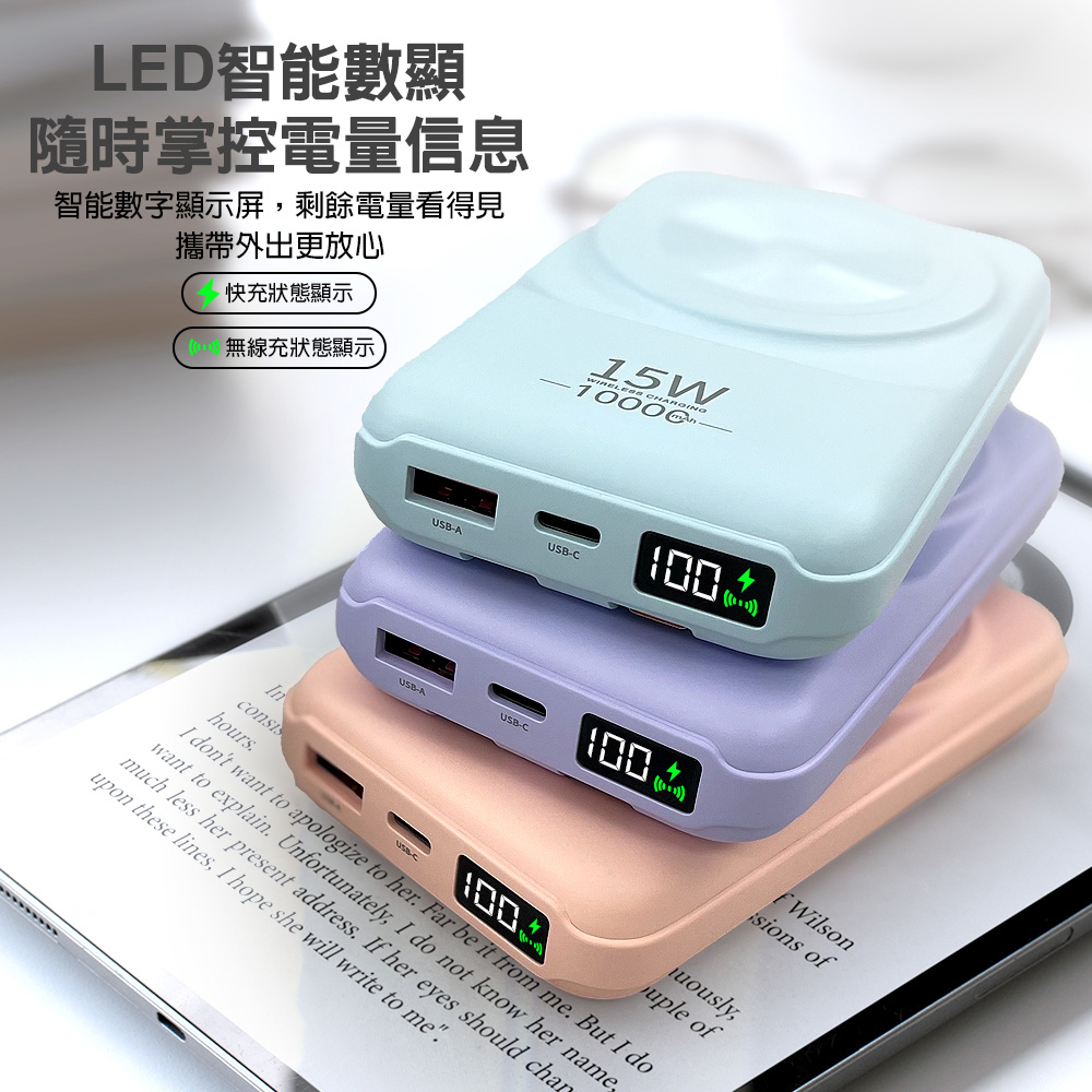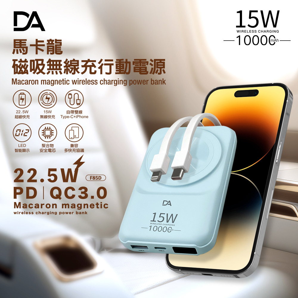 DA F58D 自帶雙線(TypeC+Lightining)+15W磁吸無線充電+數字顯示 多功能行動電源