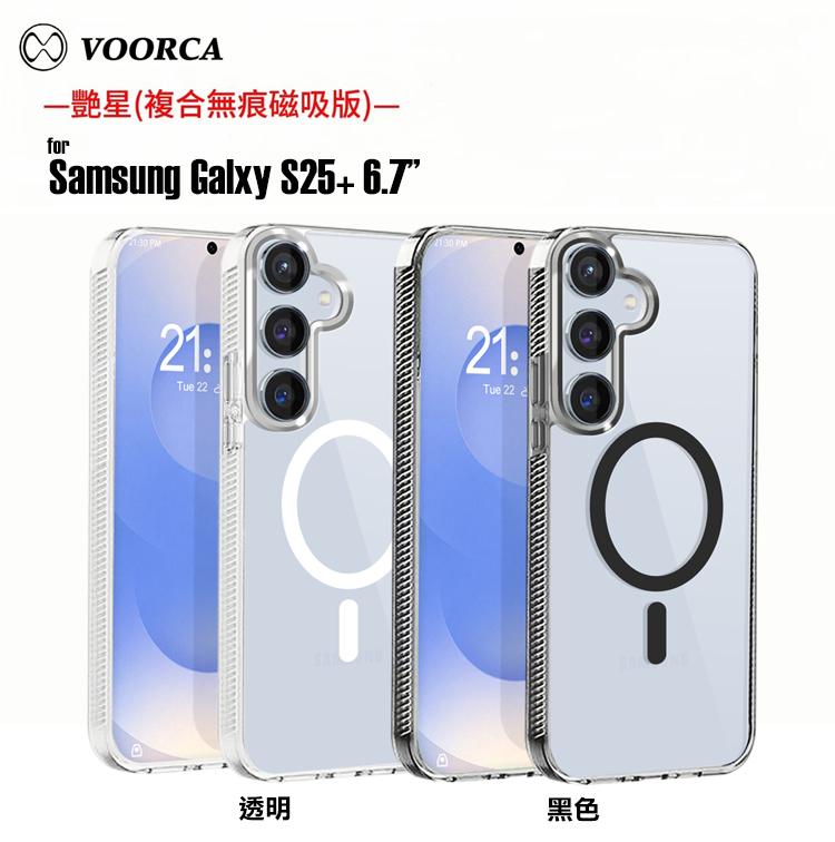 VOORCA for Samsung Galaxy S25+ 6.7 豔星複合無痕磁吸版透明軍規保護殼-黑