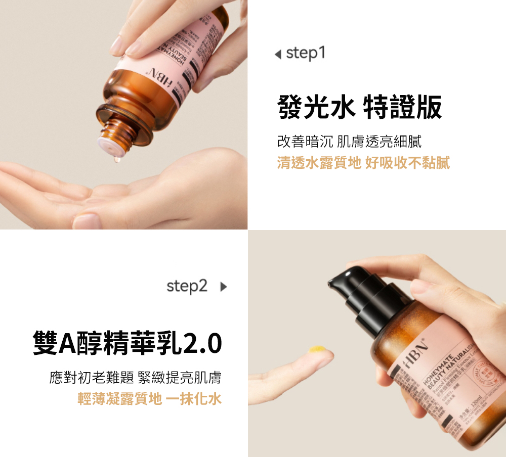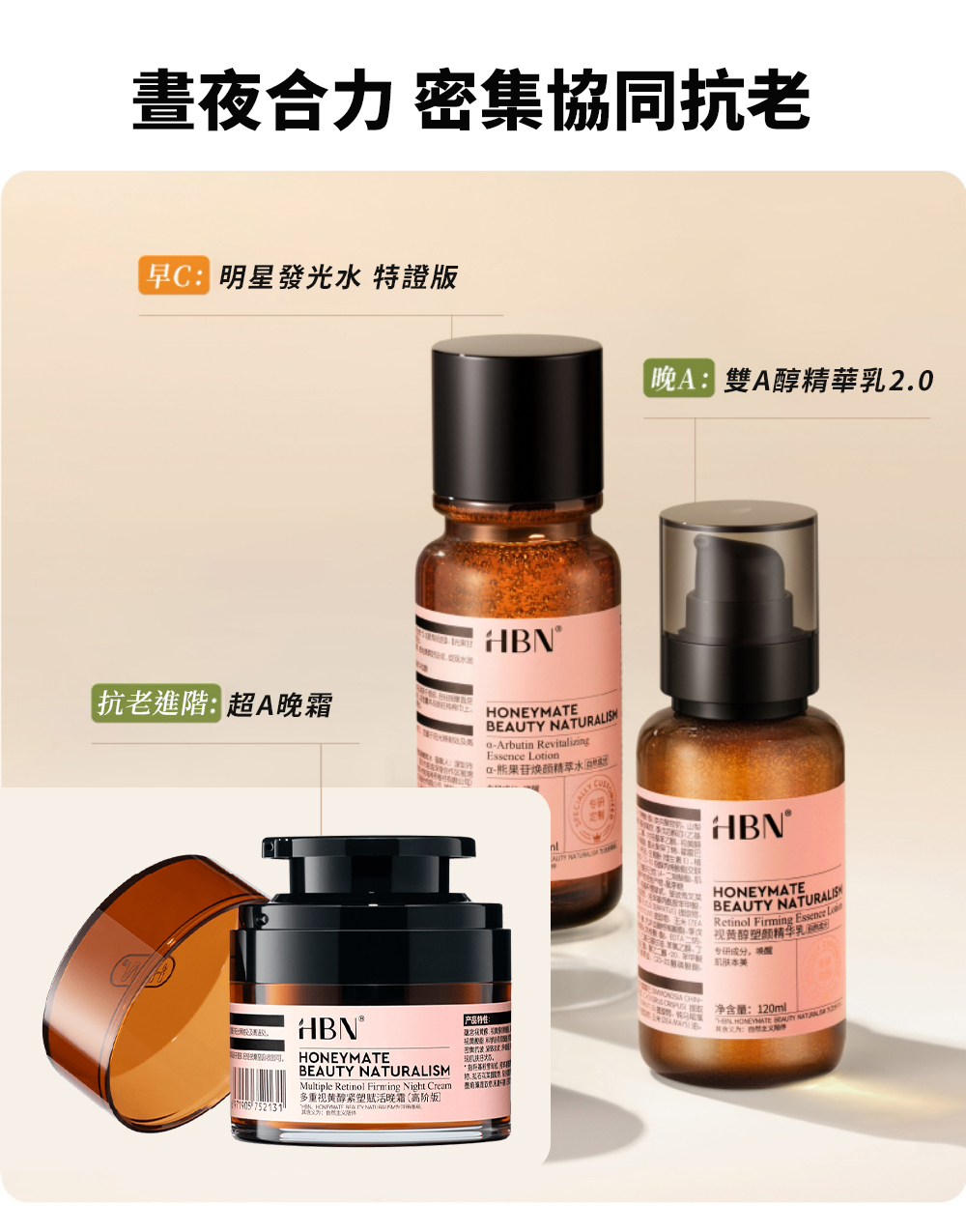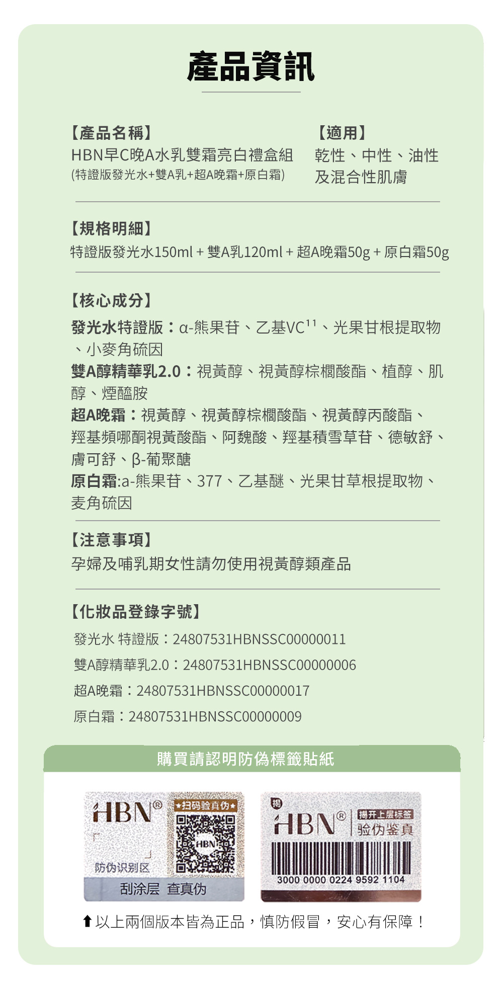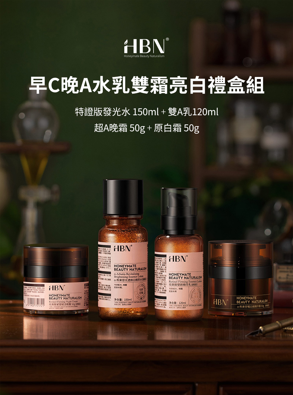 【HBN官方】早C晚A水乳雙霜亮白禮盒組 (特證版發光水+雙A乳+超A晚霜+原白霜)