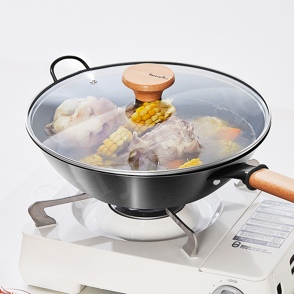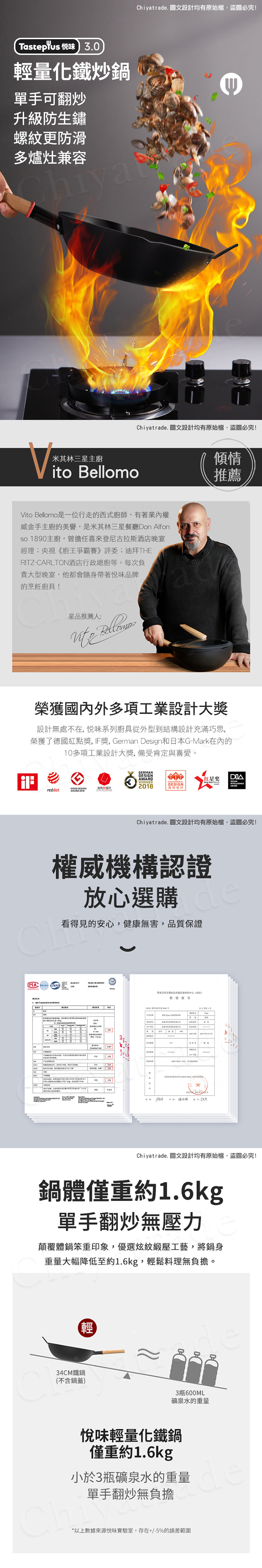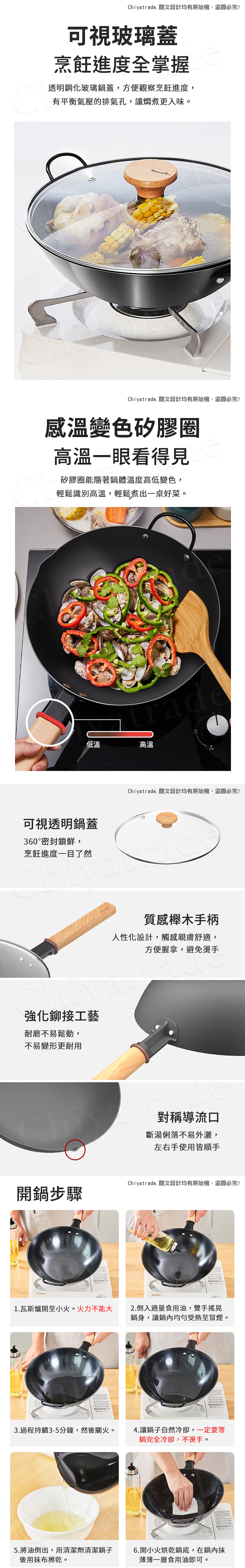 【Taste Plus】悅味元鐵 窒化鐵 無塗層 中式中華炒鍋 輕量化鐵鍋 32cm IH全對應設計(贈玻璃鍋蓋)