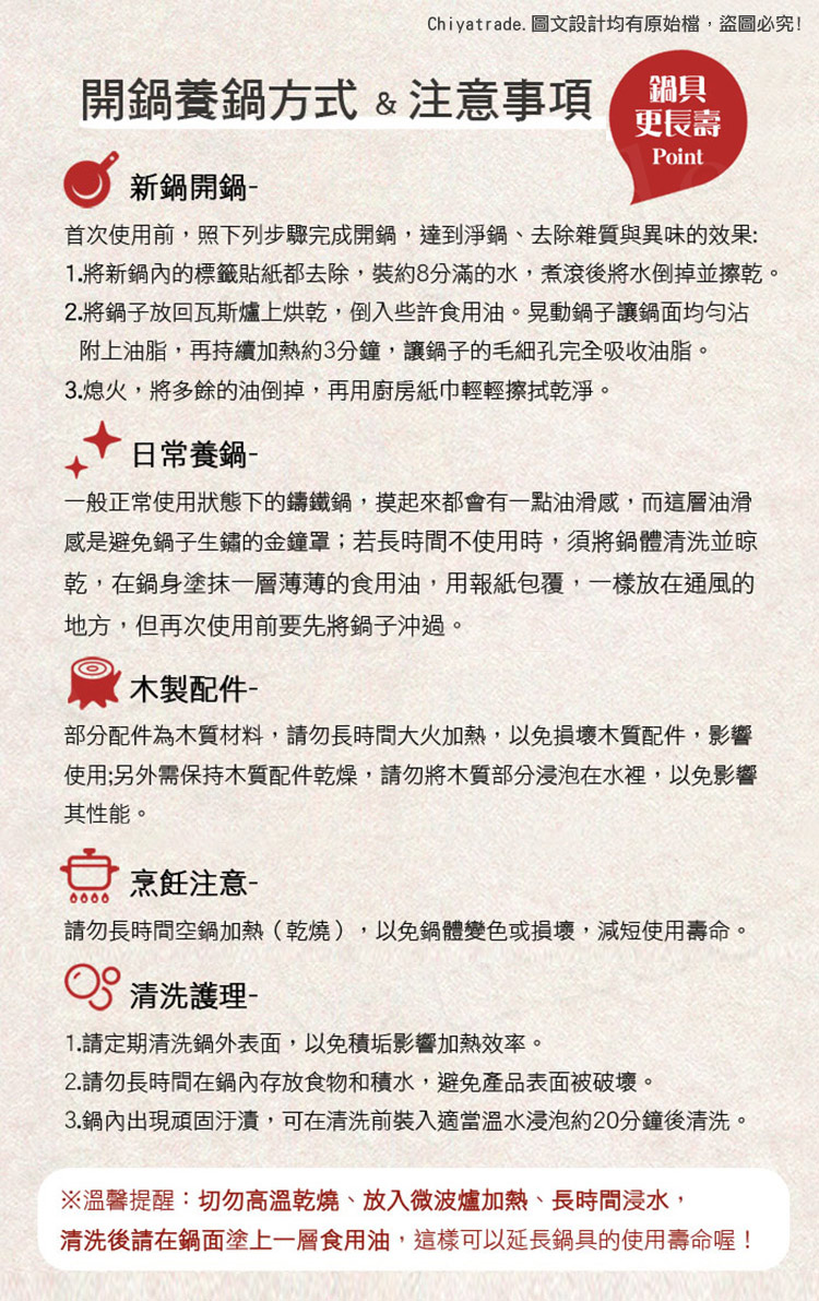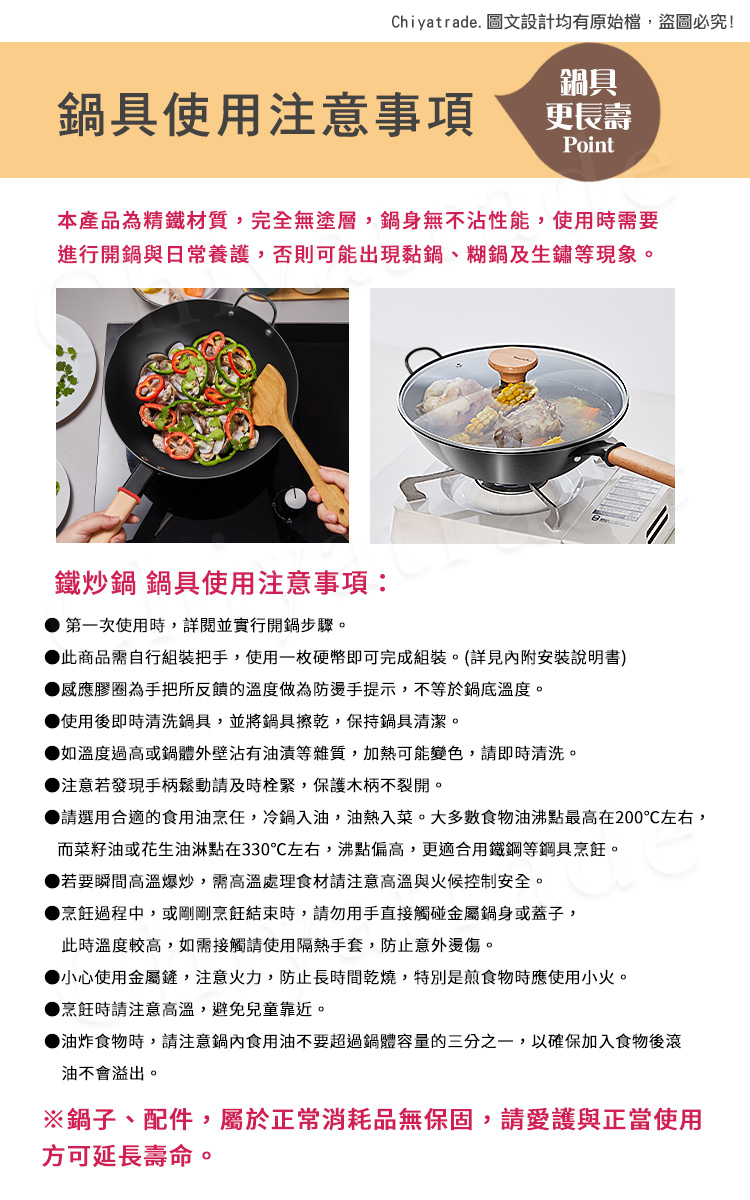 ●本產品為精鐵材質,完全無塗層,鍋身無不沾性能