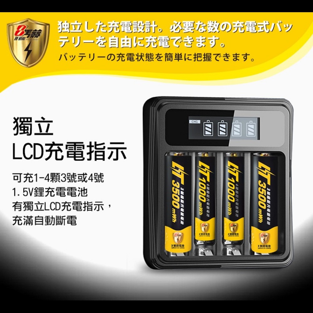 【8馬赫】3號/AA 恆壓可充式1.5V鋰電池全新特大能量3700mWh8入+(3號/4號通用)液晶鋰充電器
