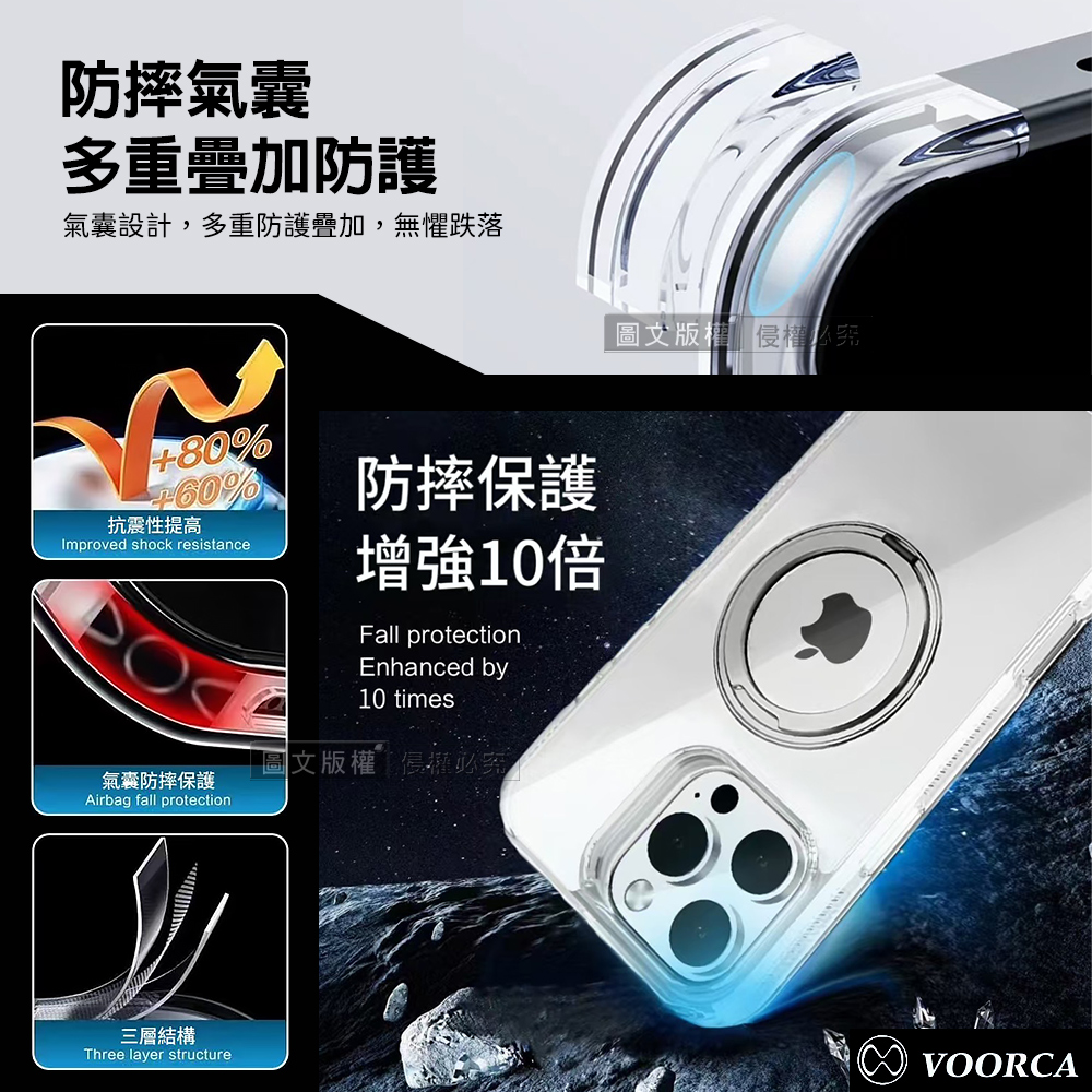 輕薄透徹氣囊殼+360度旋轉磁吸支架