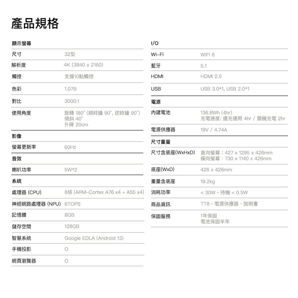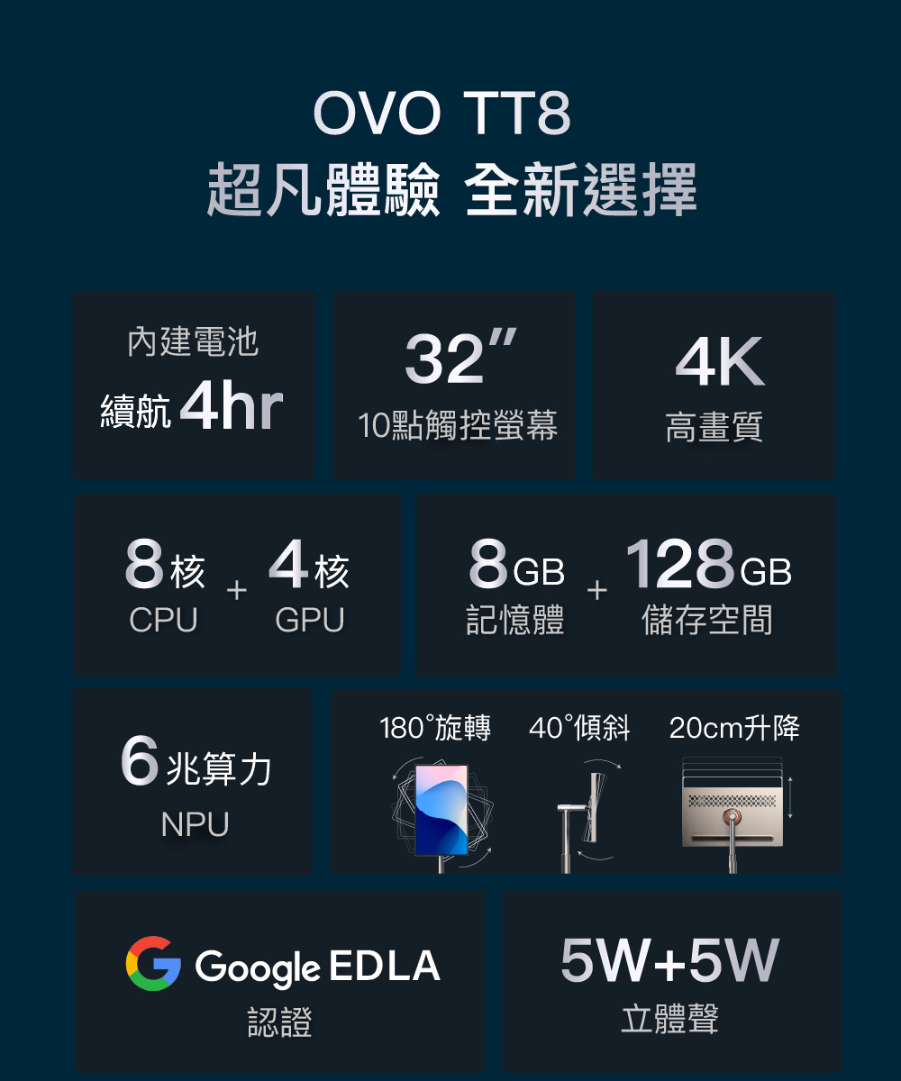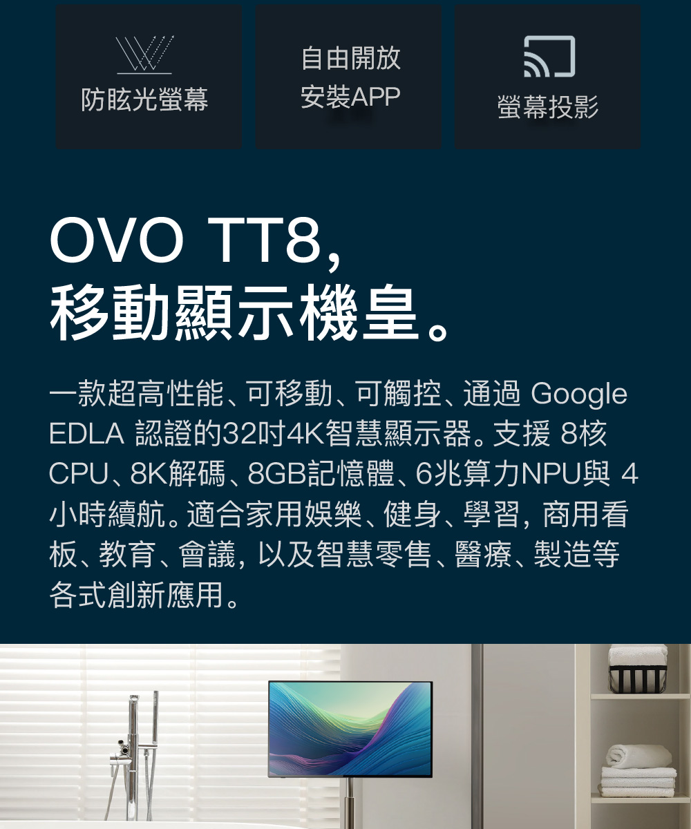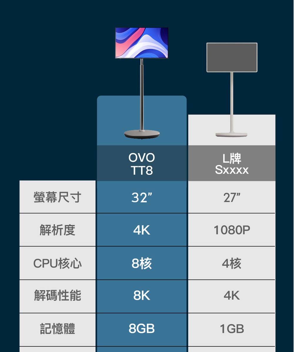 [送基本安裝] OVO 32型 推推AI閨蜜機 可移動液晶顯示器 TT8