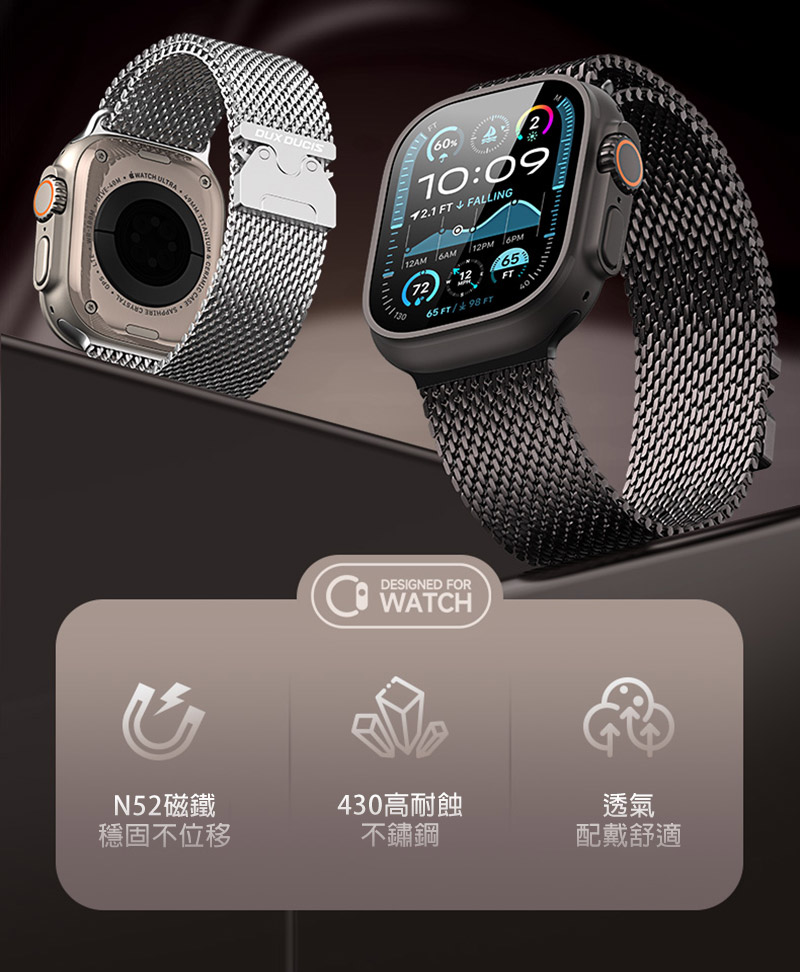 DUX DUCIS Apple 蘋果 Watch (38mm/40mm/41mm/42mm(十代)) 米蘭 Air 磁吸錶帶(銀色)
