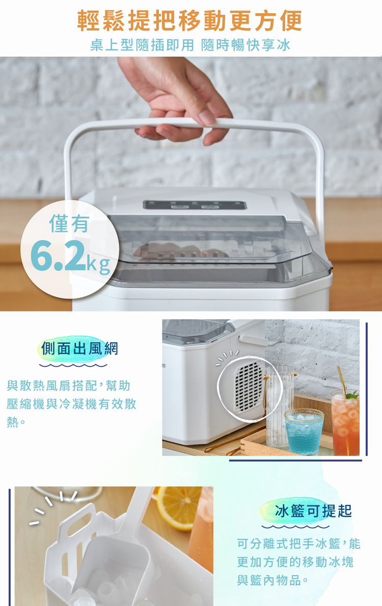 體積輕巧|移動外出更方便|約7分鐘迅速出冰|單次製冰9顆