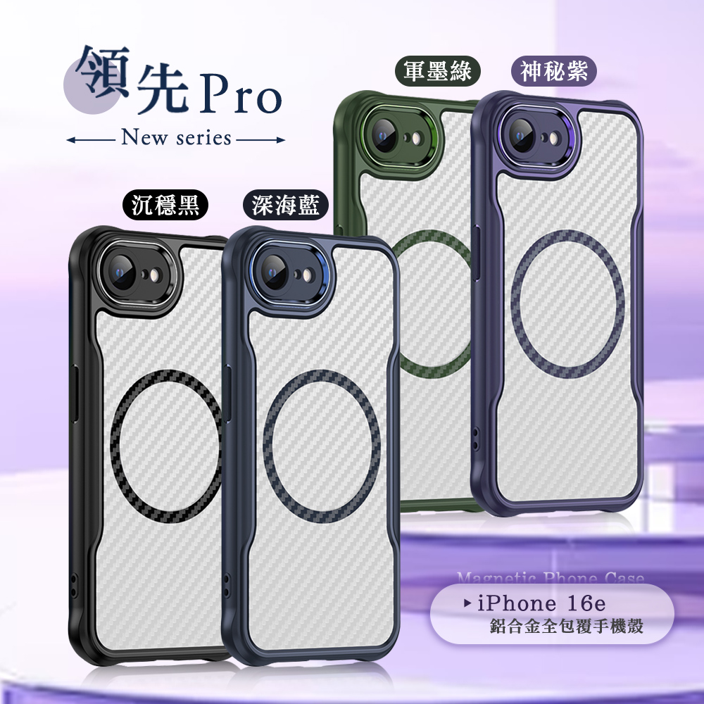 領先Pro iPhone 16e 鋁合金鏡頭框 碳纖紋磁吸防摔殼 手機殼(沉穩黑)