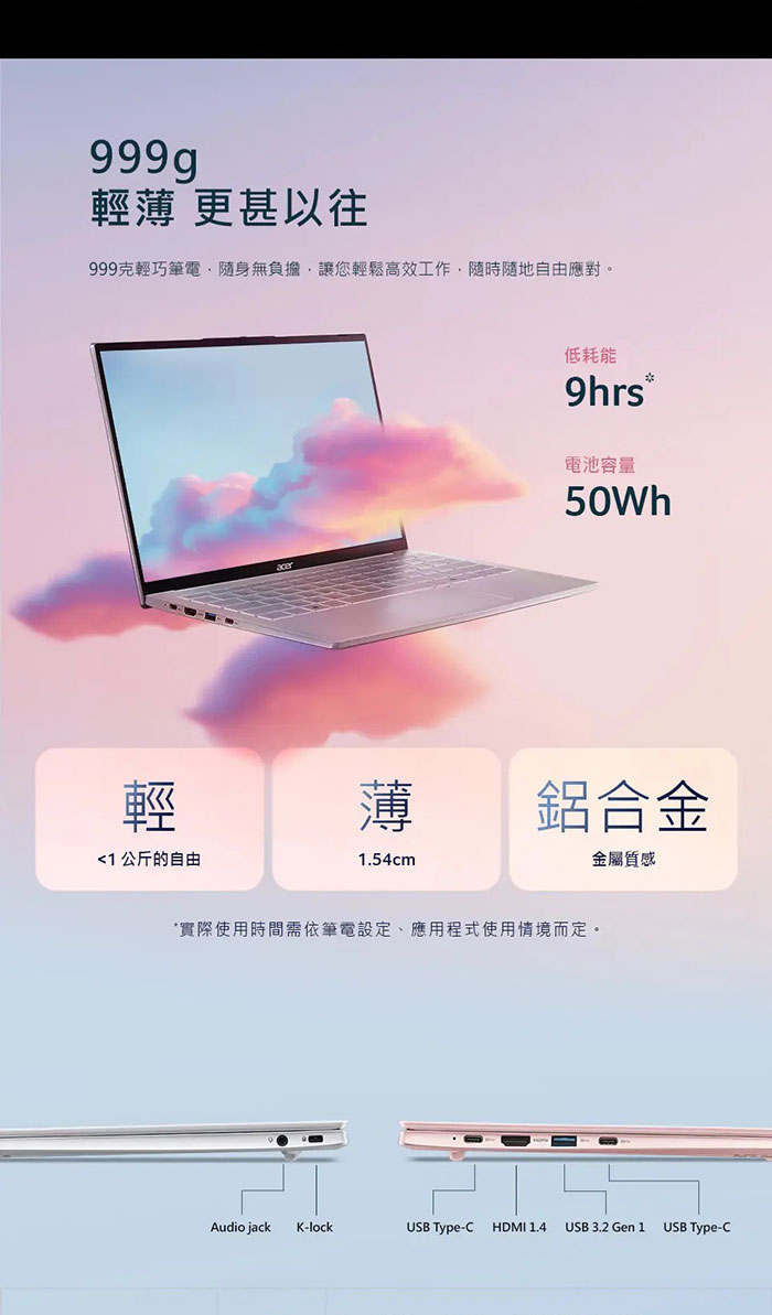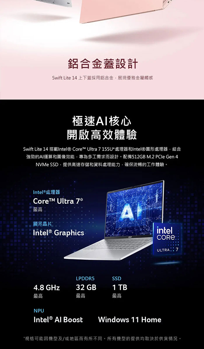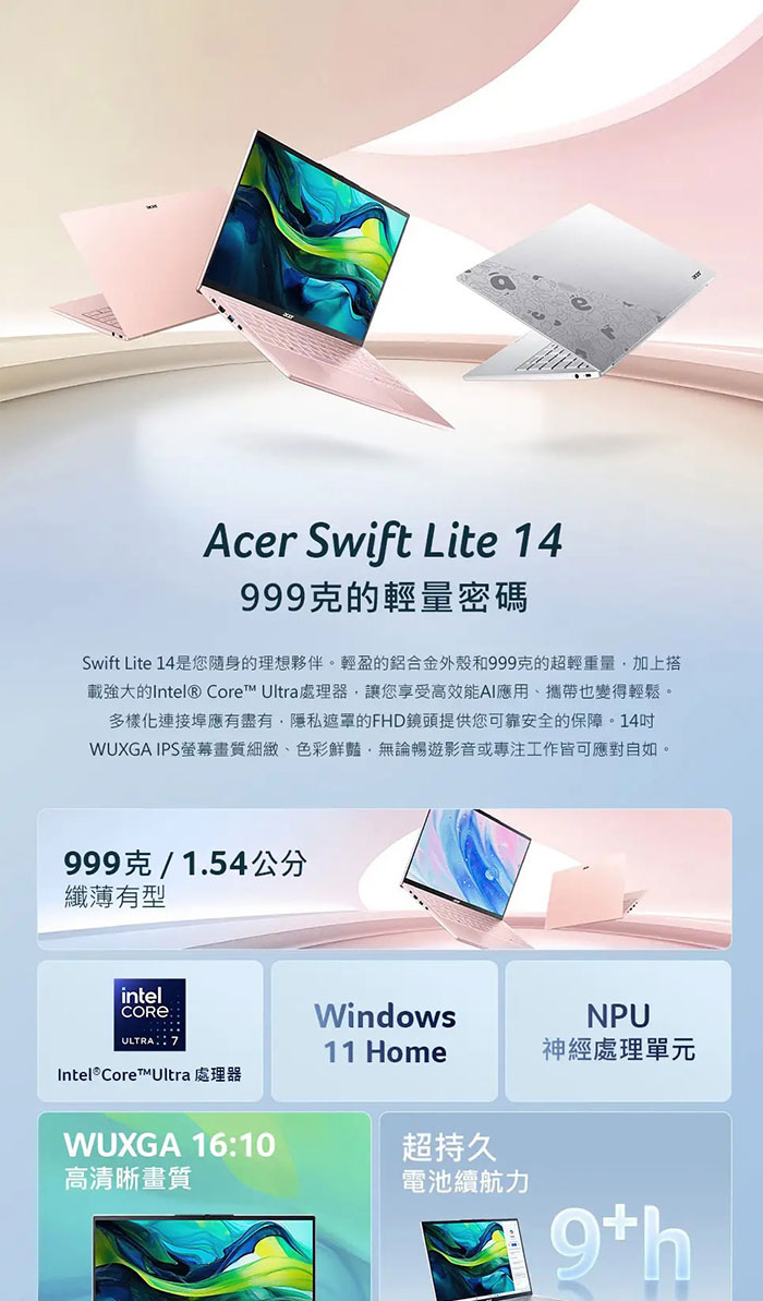 《Acer 宏碁》SFL14-54M-71C8(14吋WUXGA/Ultra 7 155U/32G/4TB PCIe SSD/Win11/兩年保/特仕版)