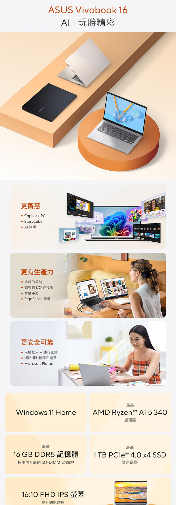 《ASUS 華碩》 M1607KA-0031B340H(16吋WUXGA/Ryzen AI 5 340/16G+16G/1TB SSD/Win11/特仕版)