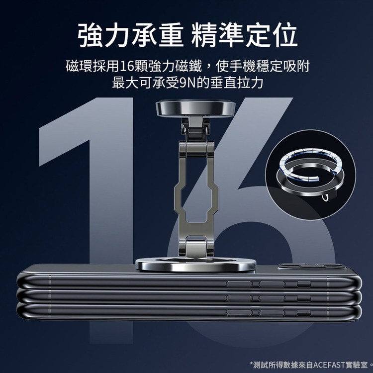 環形磁線圈精準定位,採用16顆強力磁鐵,穩定吸附