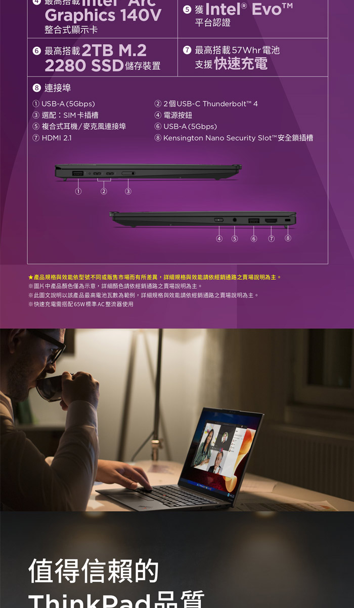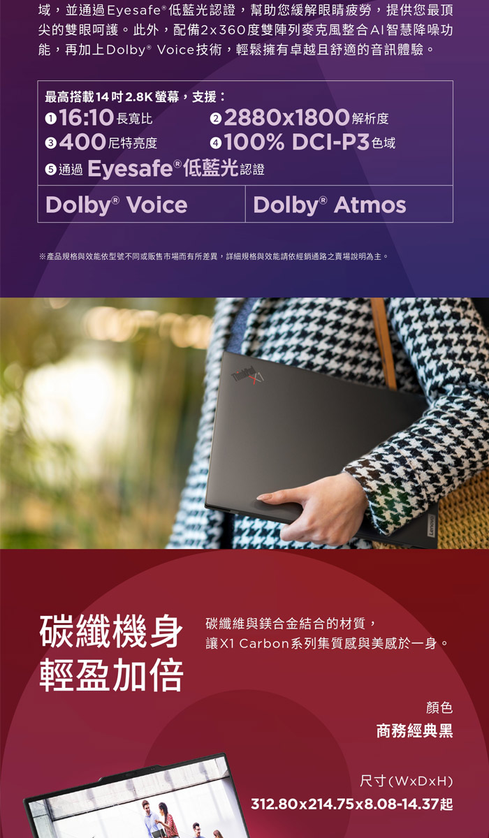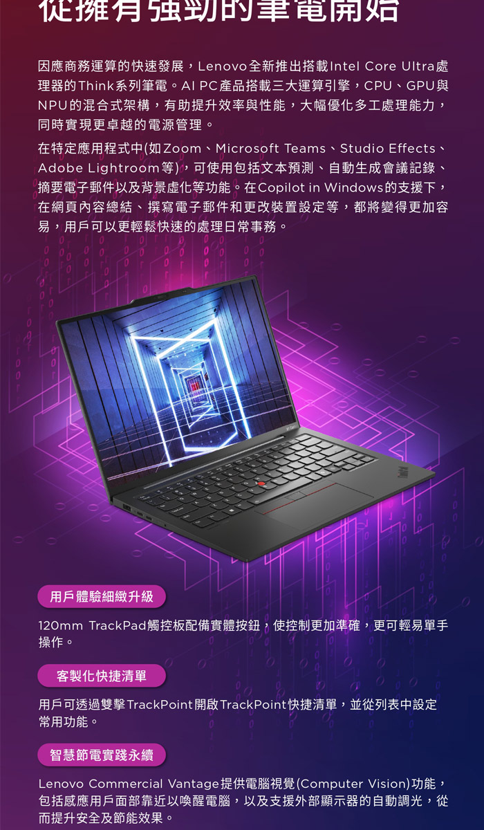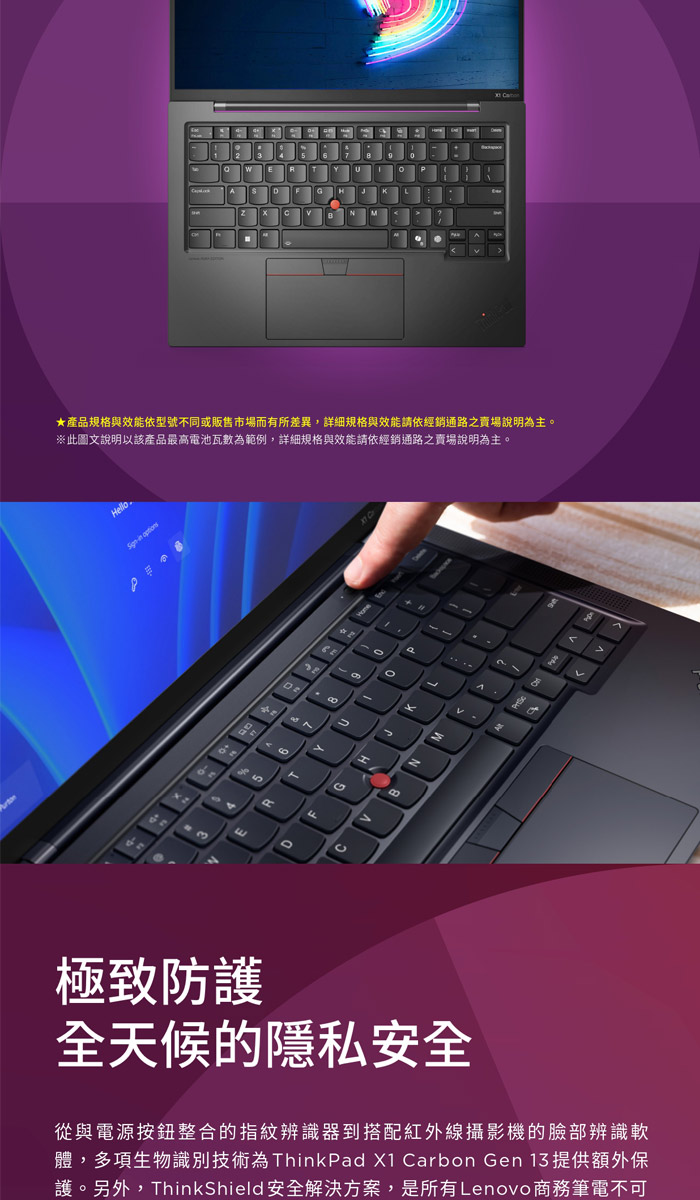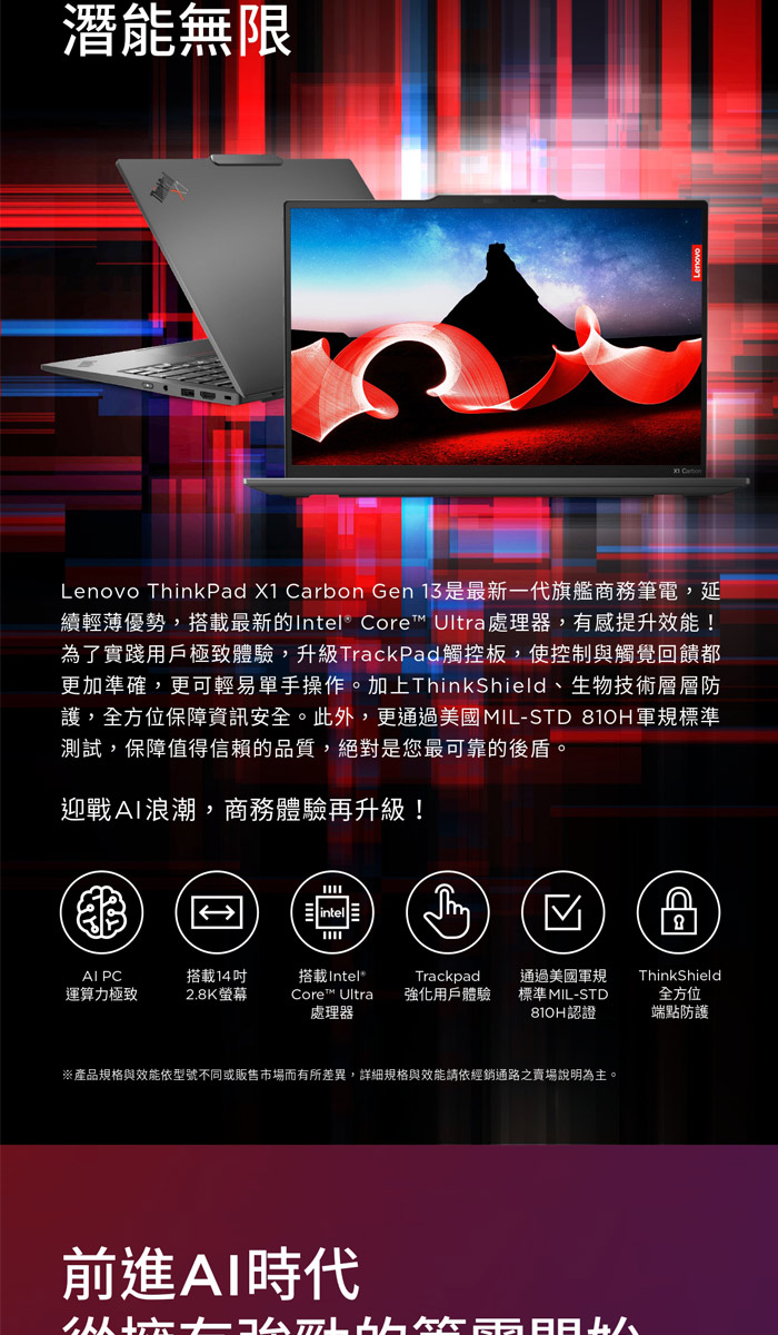 《Lenovo 聯想》ThinkPad X1 Carbon Gen 13(14吋2.8K/Ultra 7 258V/32G/2TB PCIe SSD/特仕版)
