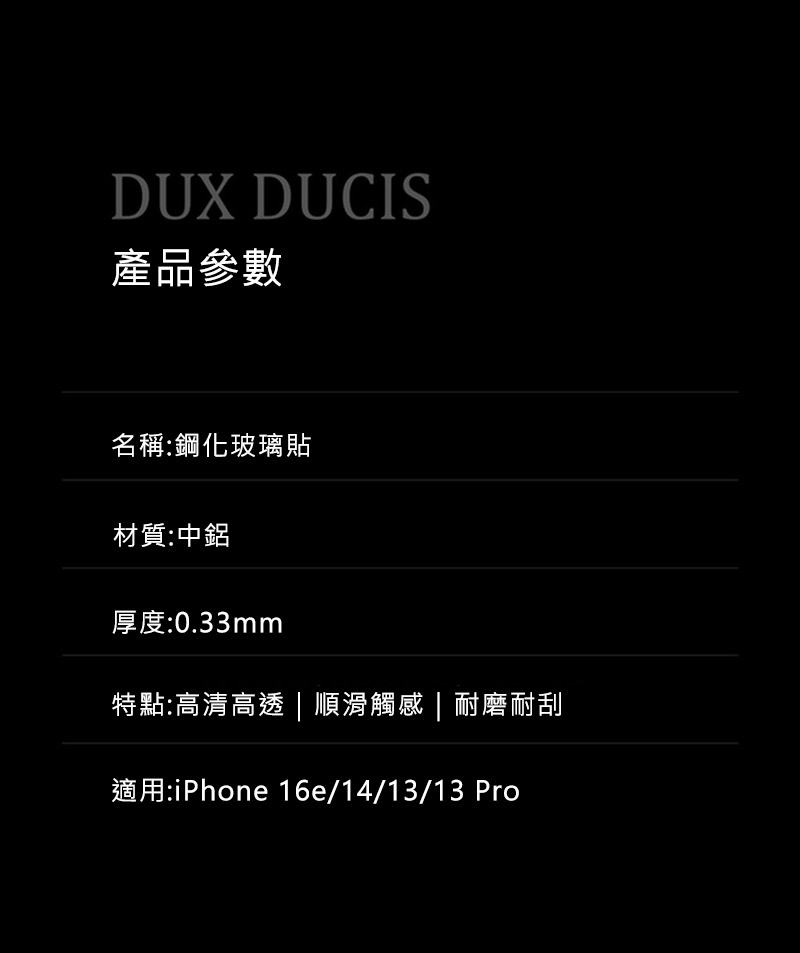 DUX DUCIS Apple iPhone 17e/ 16e / iPhone 14 / iPhone 13 / iPhone 13 Pro 滿版鋼化玻璃貼