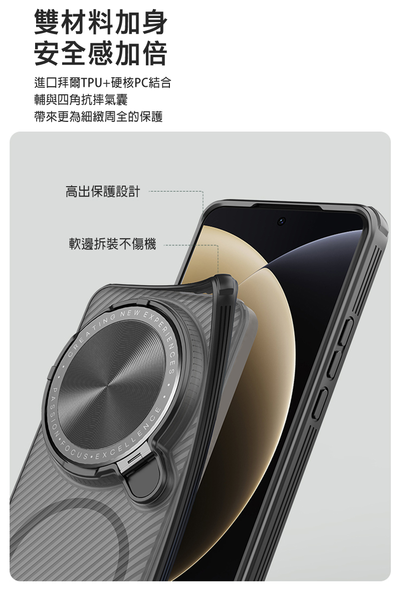 .雙重材質全包保護,輔與四角抗摔氣囊,抗震防摔