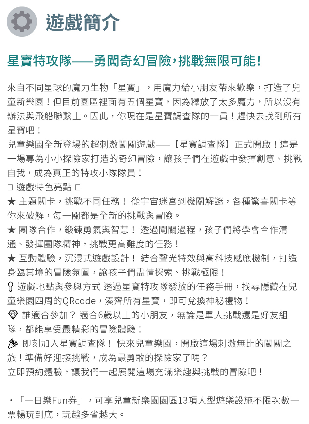 【兒童新樂園】一日樂fun劵含星寶調查隊(MO25)