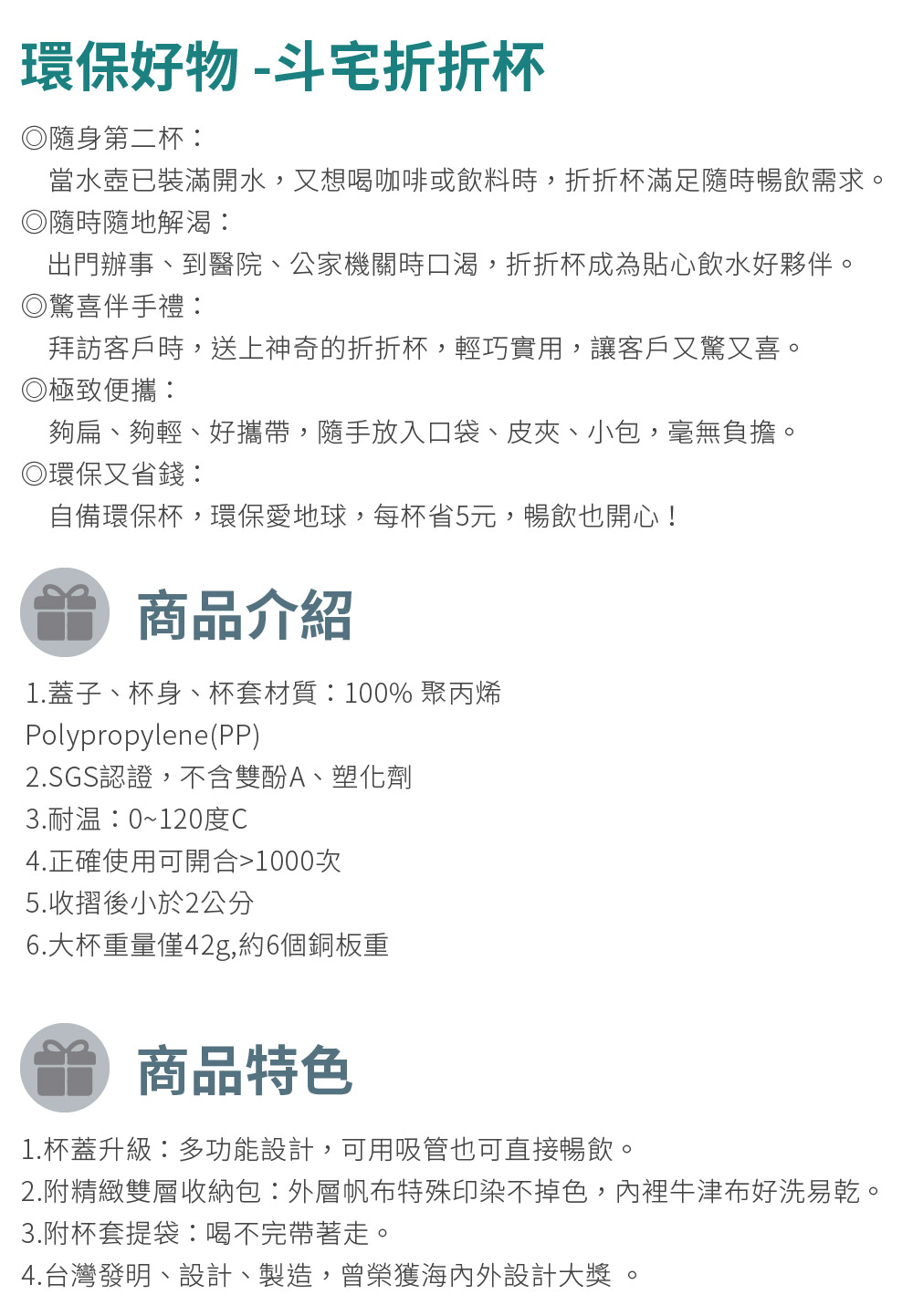 【斗宅折折杯】FoFoCup2.0 環保杯(買大杯送小杯)線上宅配券(MO)
