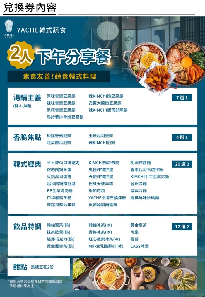 【台北】YACHE韓式蔬食-雙人下午分享餐
