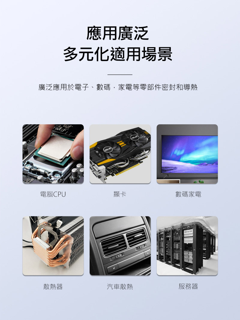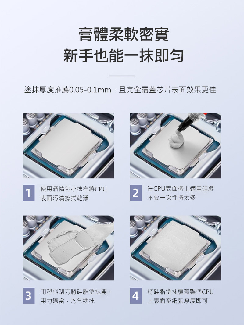 .導熱係數越大,導熱能力越強,請依需求選購散熱膏