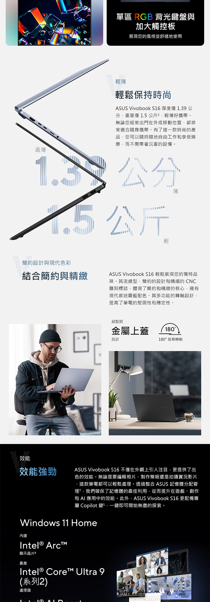 《ASUS 華碩》 S5606CA-0038K225H(16吋3K/Ultra 5 225H/16G/1TB SSD/Win11/二年保)